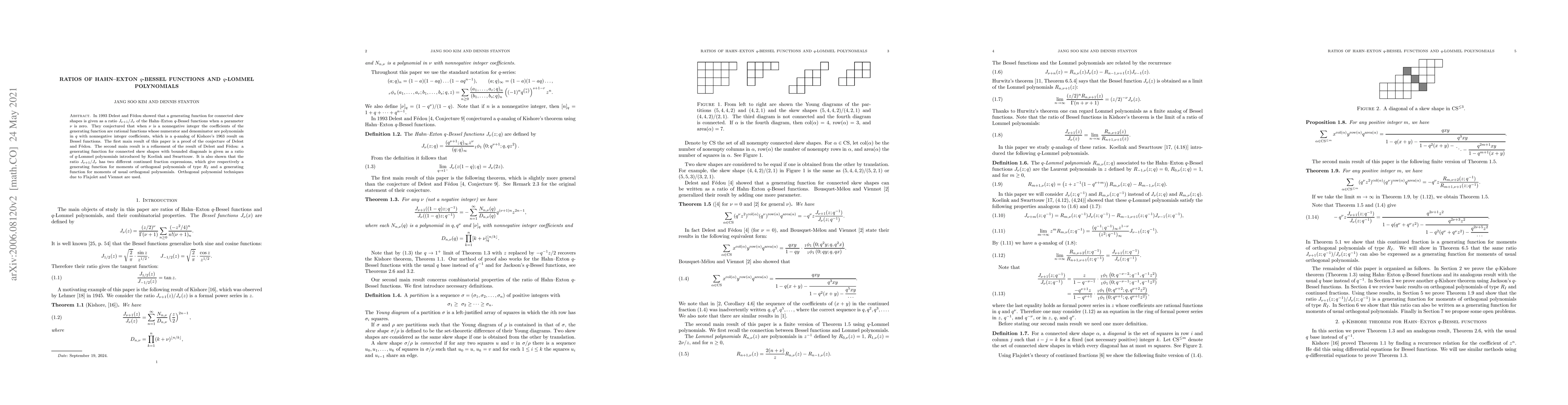 This paper proves Delest and F\'edou's conjecture regarding the rationality of ratios of Hahn--Exton $q$-Bessel functions and introduces a generating function for connected skew shapes using $q$-Lommel polynomials. It also reveals two distinct continued fraction expressions for the ratio $J_{\nu+1}/J_{\nu}$, linking them to moments of orthogonal polynomials.