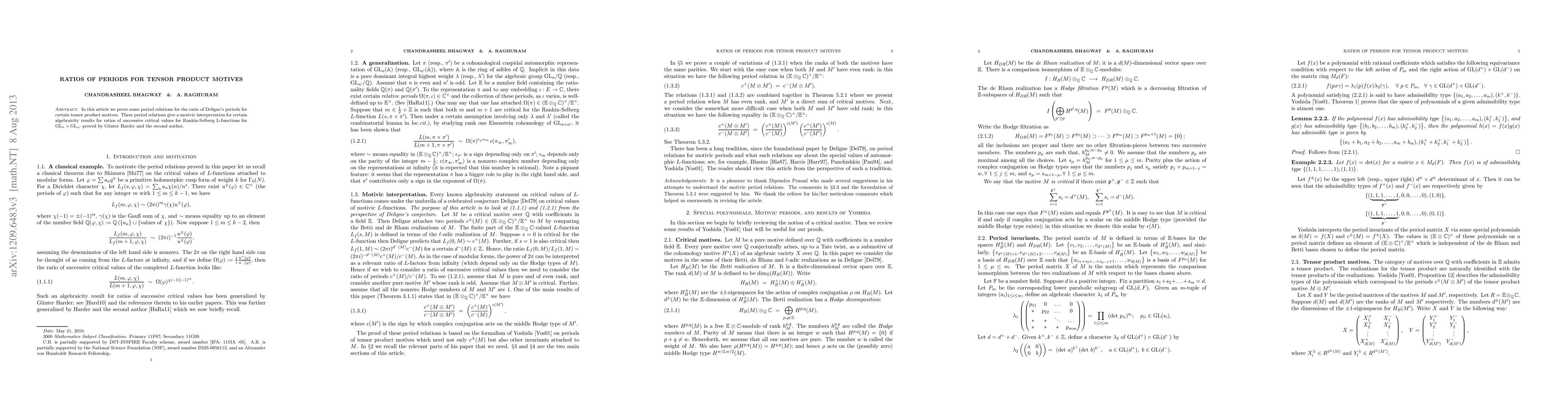 The paper establishes period relations for ratios of Deligne periods for specific tensor product motives, providing a motivic interpretation for algebraicity results on ratios of Rankin-Selberg L-functions for ${\rm GL}_n \times {\rm GL}_{n'}$ as proven by Günter Harder and the author.