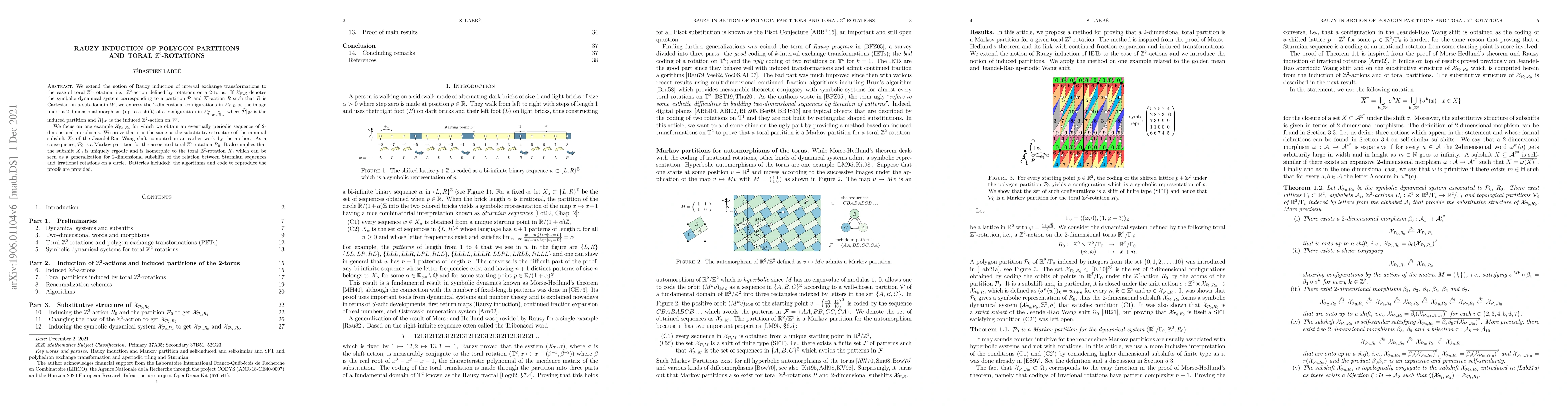 This paper extends Rauzy induction to toral $\mathbb{Z}^2$-rotations, showing that 2-dimensional configurations correspond to morphisms of induced partitions. It demonstrates an eventually periodic sequence of such morphisms for a specific example, proving it matches the substitutive structure of a minimal subshift, and concludes the subshift is uniquely ergodic and isomorphic to the rotation.