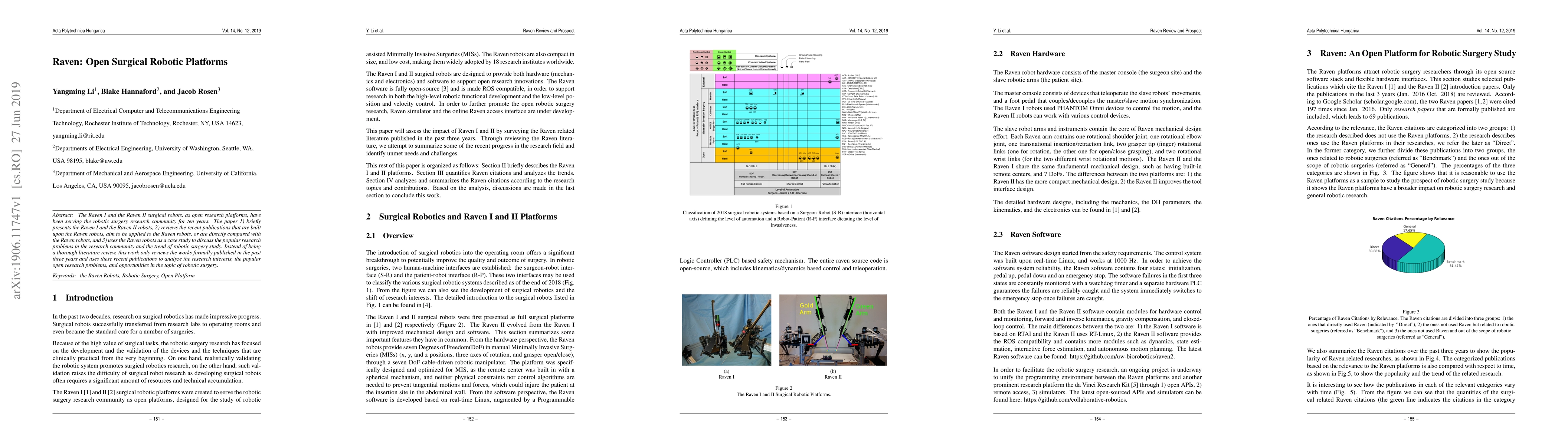 This paper reviews the Raven I and Raven II robotic platforms, focusing on recent publications utilizing or comparing to these robots. It analyzes current trends and popular research problems in robotic surgery based on these recent studies.