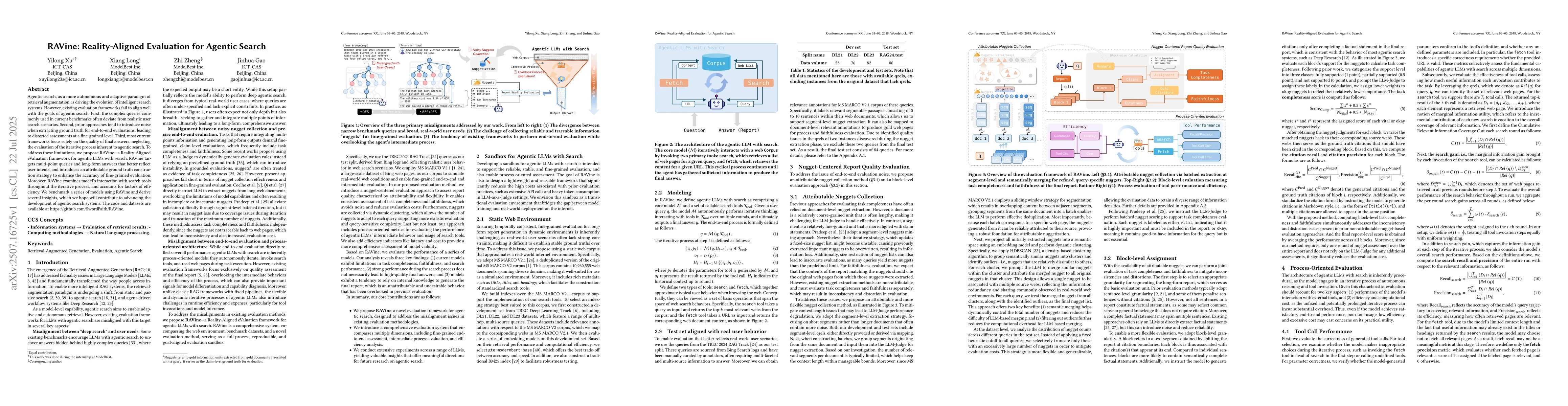 Agentic search, as a more autonomous and adaptive paradigm of retrieval augmentation, is driving the evolution of intelligent search systems. However, existing evaluation frameworks fail to align well with the goals of agentic search. First, the complex queries commonly used in current benchmarks often deviate from realistic user search scenarios. Second, prior approaches tend to introduce noise when extracting ground truth for end-to-end evaluations, leading to distorted assessments at a fine-grained level. Third, most current frameworks focus solely on the quality of final answers, neglecting the evaluation of the iterative process inherent to agentic search. To address these limitations, we propose RAVine -- a Reality-Aligned eValuation framework for agentic LLMs with search. RAVine targets multi-point queries and long-form answers that better reflect user intents, and introduces an attributable ground truth construction strategy to enhance the accuracy of fine-grained evaluation. Moreover, RAVine examines model's interaction with search tools throughout the iterative process, and accounts for factors of efficiency. We benchmark a series of models using RAVine and derive several insights, which we hope will contribute to advancing the development of agentic search systems. The code and datasets are available at https://github.com/SwordFaith/RAVine.