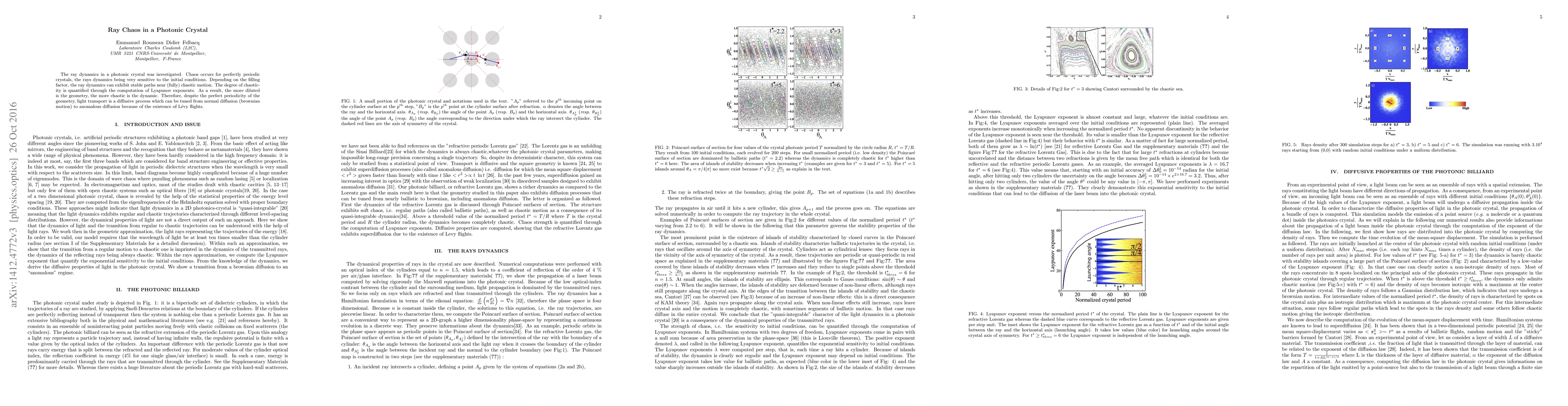 This paper's supplementary materials provide calculations and experimental results on light propagation in a photonic crystal, focusing on transmitted rays and justifying the geometrical optics approximation. It demonstrates that the Lyapunov exponent asymptotically grows as ln(T/R), where T is the crystal period and R is the cylinder radius, and presents experimental results showing exponential sensitivity to initial conditions.