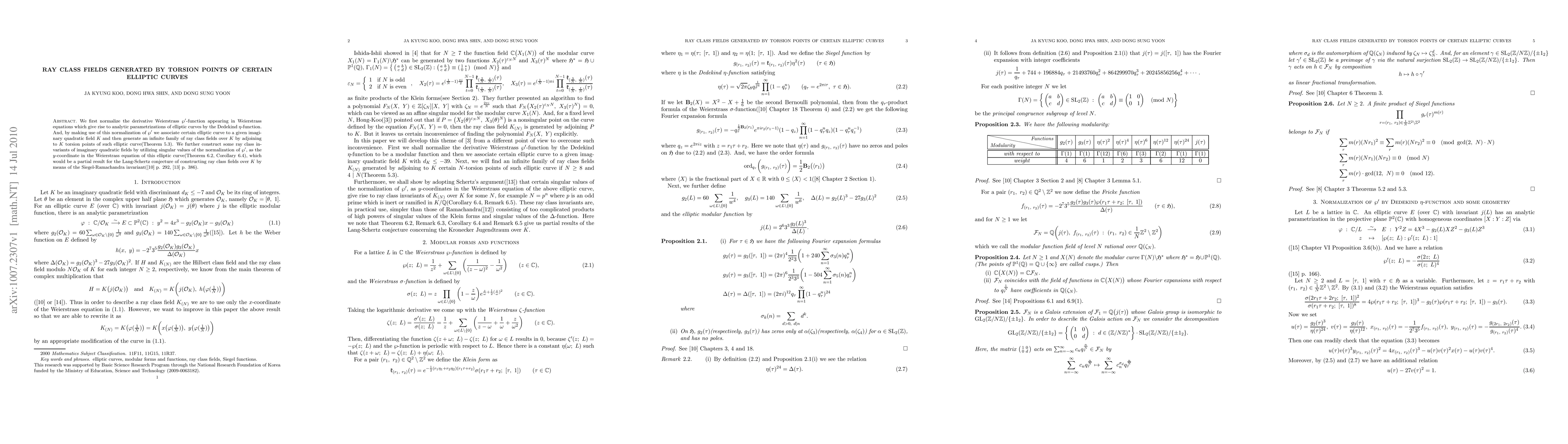 This research paper introduces a method to generate ray class fields over imaginary quadratic fields using torsion points of elliptic curves, laying the groundwork for addressing the Lang-Schertz conjecture.