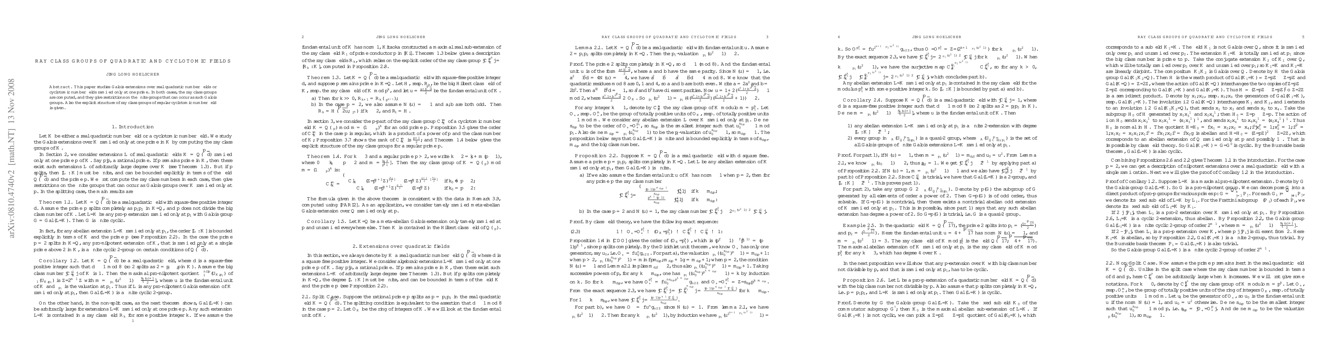 This paper computes ray class groups for Galois extensions of real quadratic and cyclotomic number fields ramified at one prime, revealing constraints on possible finite Galois groups and providing an explicit structure for regular cyclotomic number fields.