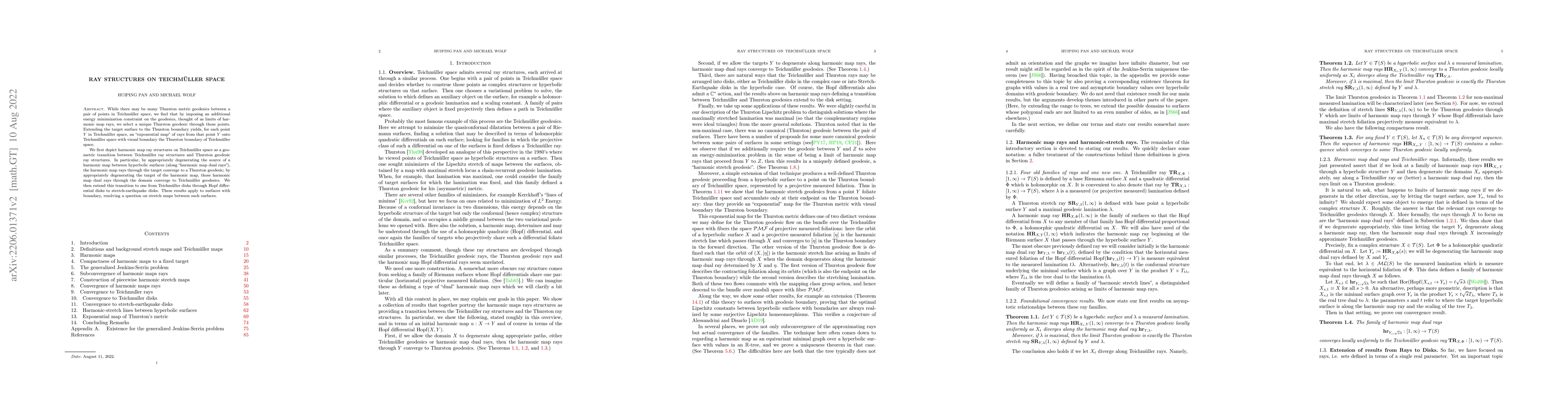 While there may be many Thurston metric geodesics between a pair of points in Teichm\"uller space, we find that by imposing an additional energy minimization constraint on the geodesics, thought of as limits of harmonic map rays, we select a unique Thurston geodesic through those points. Extending the target surface to the Thurston boundary yields, for each point $Y$ in Teichm\"uller space, an "exponential map" of rays from that point $Y$ onto Teichm\"uller space with visual boundary the Thurston boundary of Teichm\"uller space. We first depict harmonic map ray structures on Teichm\"uller space as a geometric transition between Teichm\"uller ray structures and Thurston geodesic ray structures. In particular, by appropriately degenerating the source of a harmonic map between hyperbolic surfaces (along "harmonic map dual rays"), the harmonic map rays through the target converge to a Thurston geodesic; by appropriately degenerating the target of the harmonic map, those harmonic map dual rays through the domain converge to Teichm\"uller geodesics. We then extend this transition to one from Teichm\"uller disks through Hopf differential disks to stretch-earthquake disks. These results apply to surfaces with boundary, resolving a question on stretch maps between such surfaces.