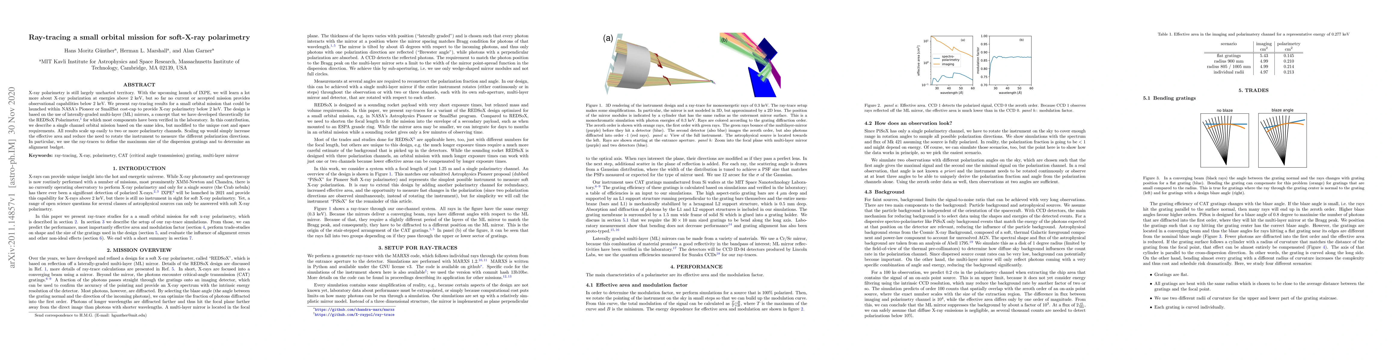 X-ray polarimetry is still largely uncharted territory. With the upcoming launch of IXPE, we will learn a lot more about X-ray polarization at energies above 2 keV, but so far no current or accepted mission provides observational capabilities below 2 keV. We present ray-tracing results for a small orbital mission that could be launched within NASA's Pioneer or SmallSat cost-cap to provide X-ray polarimetry below 2 keV. The design is based on the use of laterally-graded multi-layer (ML) mirrors, a concept that we have developed theoretically for the REDSoX Polarimeter, for which most components have been verified in the laboratory. In this contribution, we describe a single channel orbital mission based on the same idea, but modified to the unique cost and space requirements. All results scale up easily to two or more polarimetry channels. Scaling up would simply increase the effective area and reduce the need to rotate the instrument to measure the different polarization directions. In particular, we use the ray-traces to define the maximum size of the dispersion gratings and to determine an alignment budget.