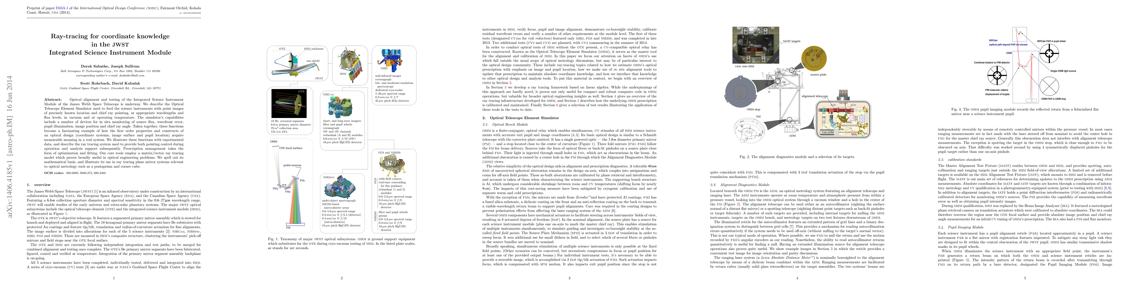 Researchers developed a ray-tracing system to test the Integrated Science Instrument Module of the James Webb Space Telescope, demonstrating its capabilities in optical alignment and testing. The system uses matrix/vector ray tracing model for optimization and fitting, enabling precise control and analysis of the telescope's pointing.