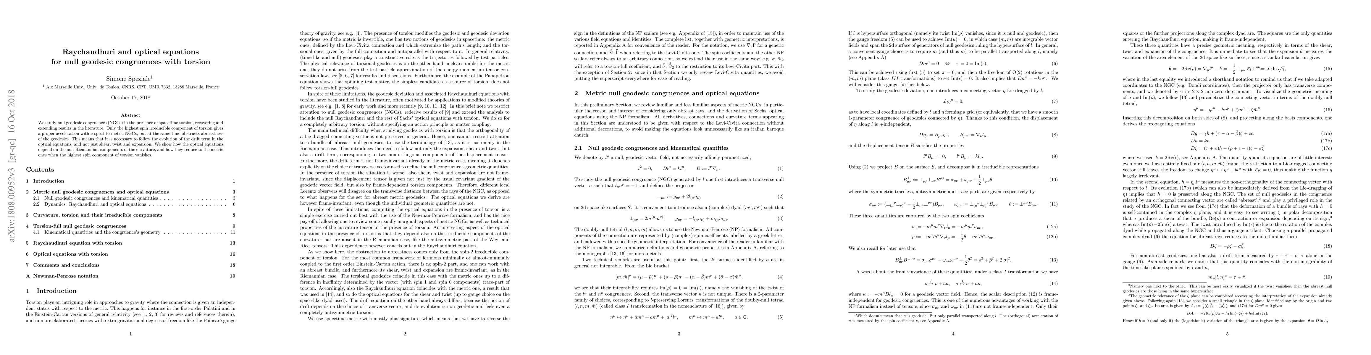 This paper investigates null geodesic congruences in torsional spacetimes, demonstrating that the highest spin irreducible component of torsion affects geodesic drift and obstructs geodesic abreastness. It extends the optical equations to include non-Riemannian curvature components, showing their reduction to metric optical equations when torsion vanishes.