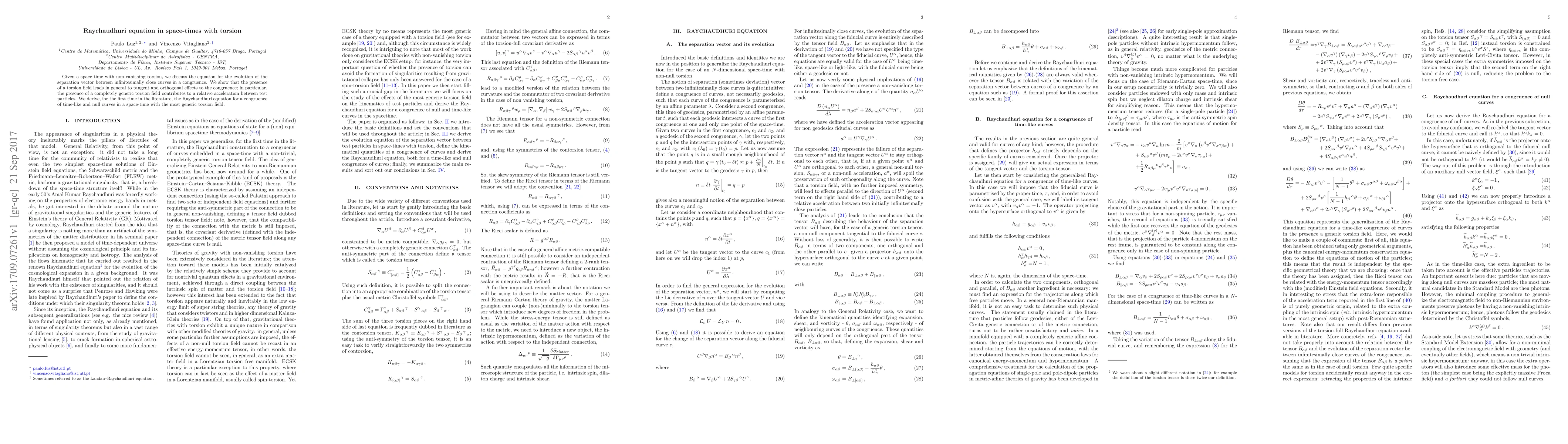 This paper derives the Raychaudhuri equation for a congruence of curves in a spacetime with torsion, demonstrating that torsion induces both tangent and orthogonal effects, leading to relative acceleration between test particles. The authors present the first formulation of the Raychaudhuri equation under the most generic torsion field.