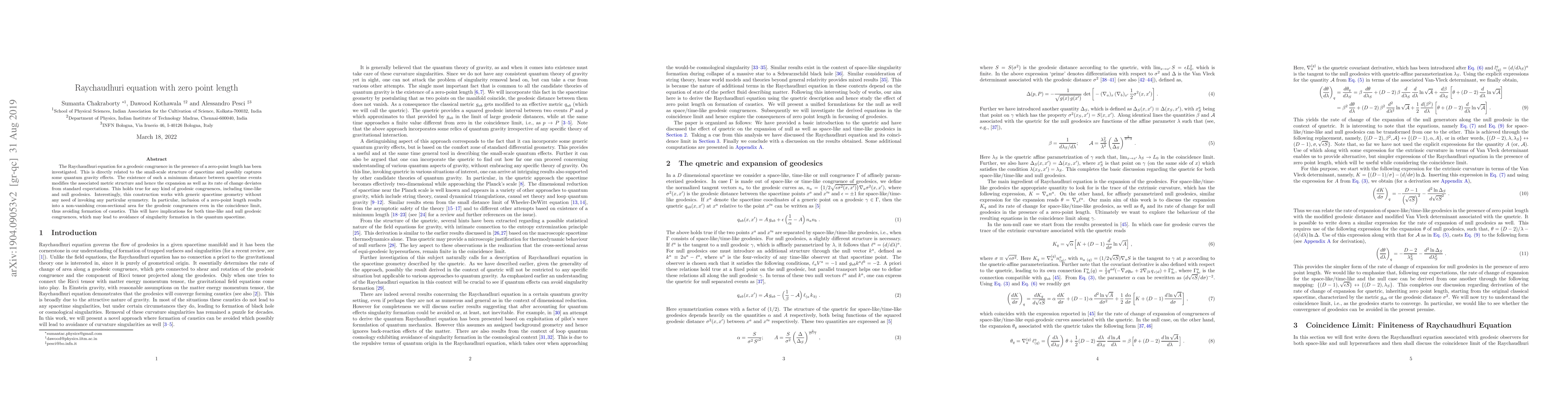 The Raychaudhuri equation is re-examined with a zero-point length, revealing modifications to spacetime metric structure and geodesic behavior, potentially capturing quantum gravity effects. This approach avoids singularity formation and caustics in geodesic congruences, applicable to any spacetime geometry.