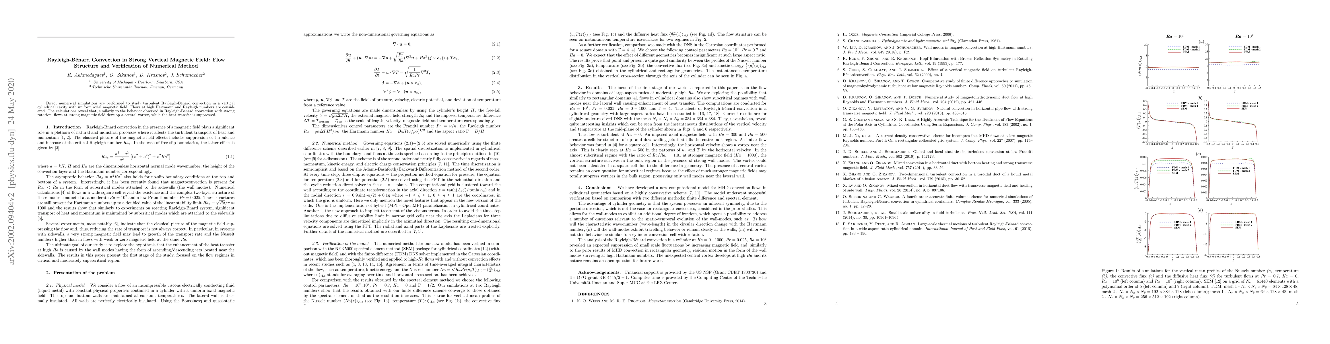 This paper investigates turbulent Rayleigh-Bénard convection in a vertical cylindrical cavity under a strong vertical magnetic field using direct numerical simulations. The results show the development of a central vortex and suppression of heat transfer, akin to the behavior seen under strong rotation.