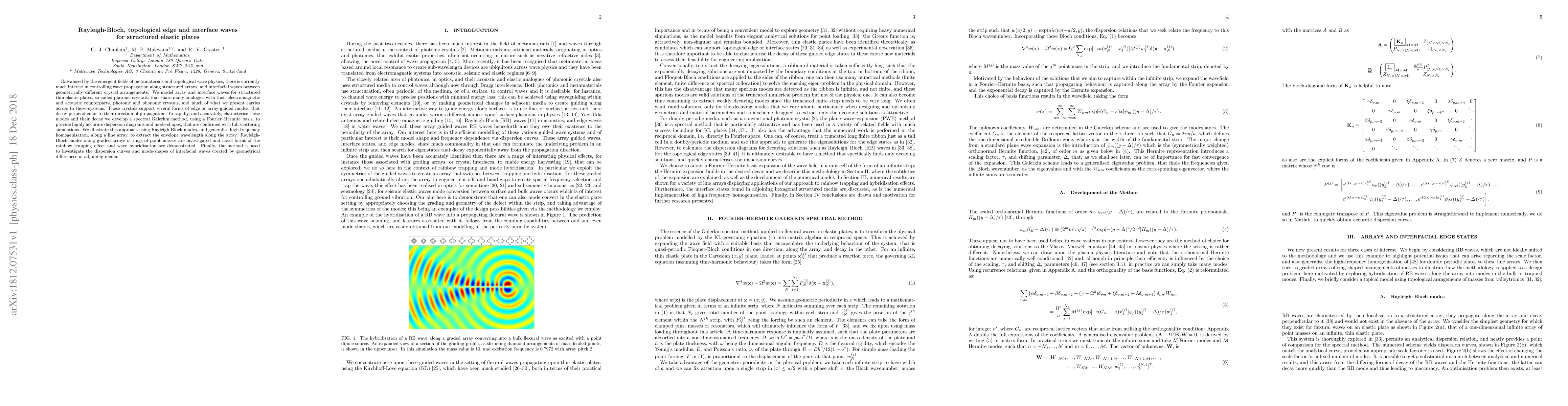 This paper models wave propagation in structured elastic plates, known as platonic crystals, and develops a spectral Galerkin method to characterize edge and interface waves. The study reveals novel phenomena such as rainbow trapping and wave hybridisation, and applies the method to analyze interfacial waves between different media.