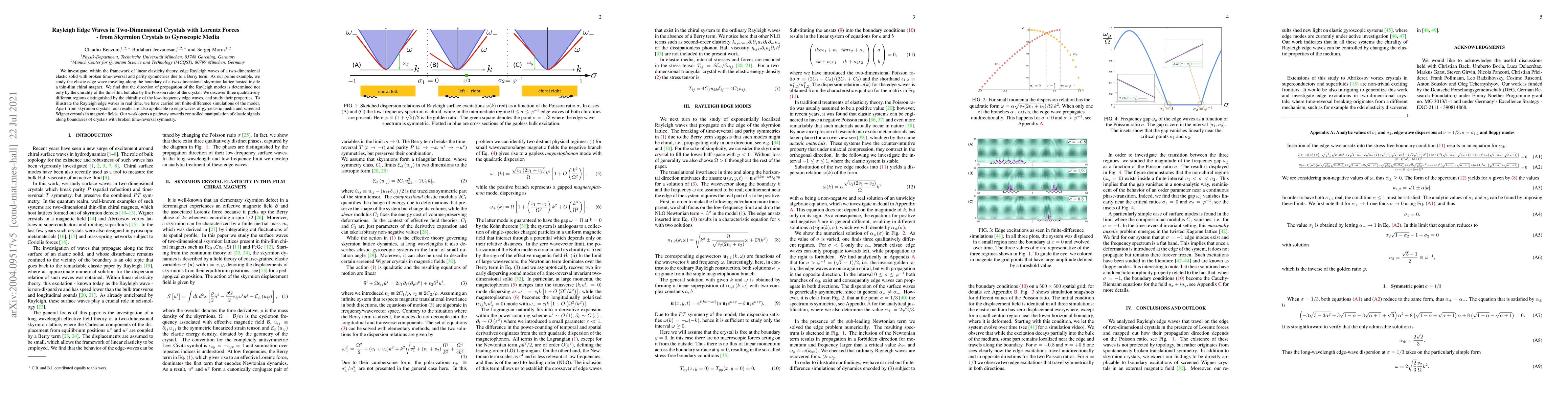 This research explores edge Rayleigh waves in 2D crystals with broken symmetries, focusing on skyrmion lattices in chiral magnets. The study reveals that wave propagation direction depends on both chirality and Poisson ratio, identifying three distinct wave regions. Findings apply to gyroelastic media and magnetic Wigner crystals, paving the way for controlling elastic signals in non-centrosymmetric crystals.