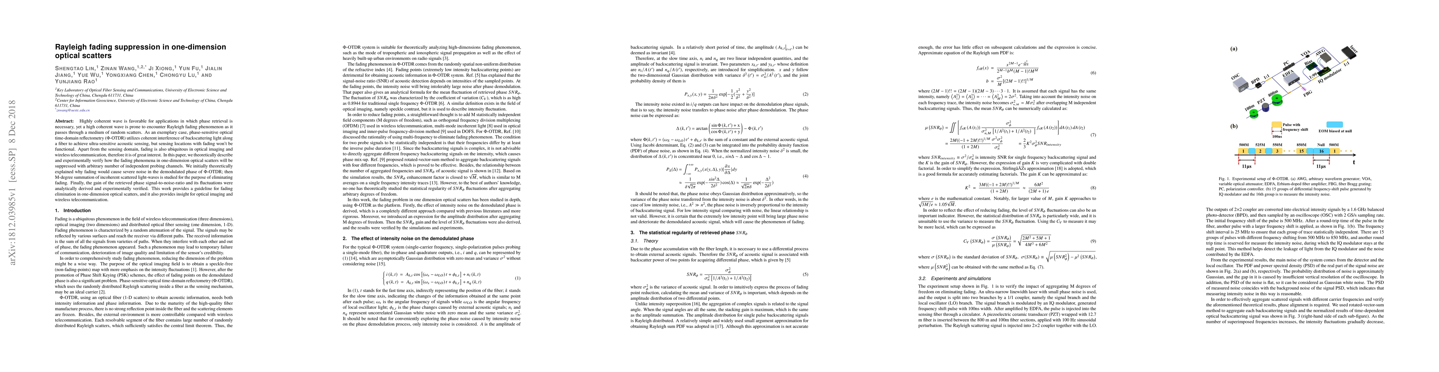 This paper theoretically and experimentally investigates methods to suppress Rayleigh fading in one-dimensional optical scatters, particularly in phase-sensitive optical time-domain reflectometry (\Phi-OTDR). It proposes the use of M-degree summation of incoherent scattered light-waves to mitigate fading, demonstrating improved phase signal-to-noise ratio and reduced fluctuations.