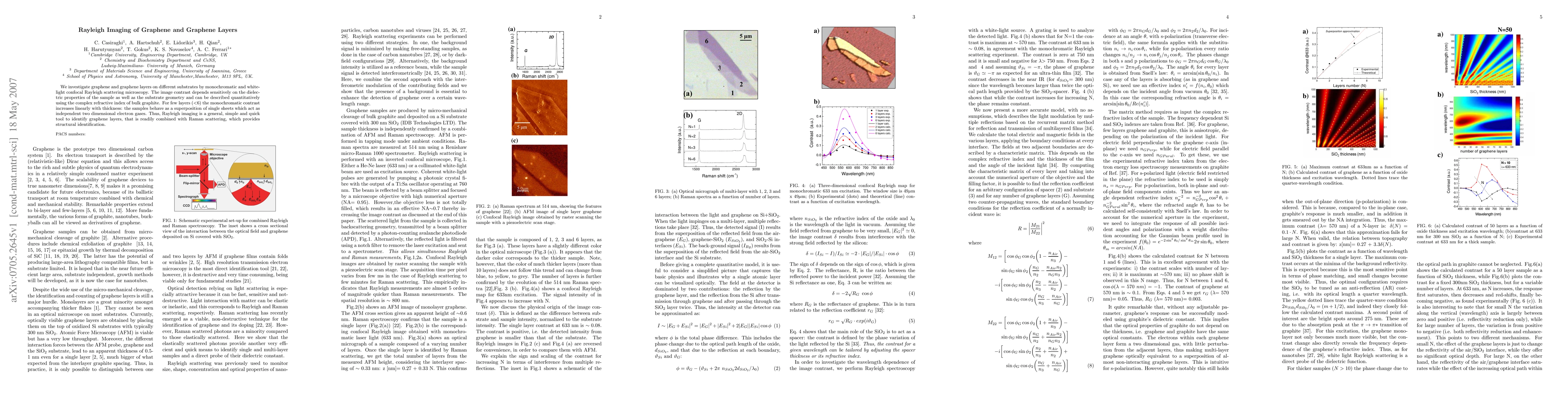 We investigate graphene and graphene layers on different substrates by monochromatic and white-light confocal Rayleigh scattering microscopy. The image contrast depends sensitively on the dielectric properties of the sample as well as the substrate geometry and can be described quantitatively using the complex refractive index of bulk graphite. For few layers (<6) the monochromatic contrast increases linearly with thickness: the samples behave as a superposition of single sheets which act as independent two dimensional electron gases. Thus, Rayleigh imaging is a general, simple and quick tool to identify graphene layers, that is readily combined with Raman scattering, which provides structural identification.