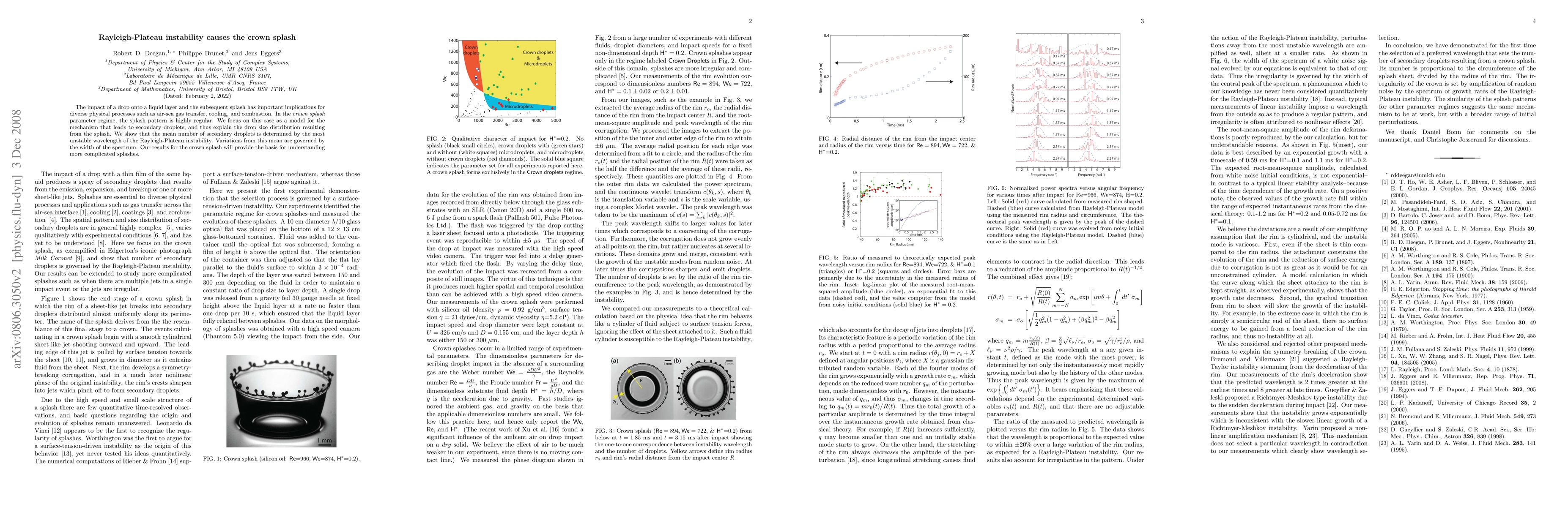 The paper investigates the crown splash phenomenon, attributing its regularity to the Rayleigh-Plateau instability, and demonstrates that the mean number of secondary droplets is determined by the most unstable wavelength of this instability. Variations in the number of droplets are influenced by the instability's spectrum width.