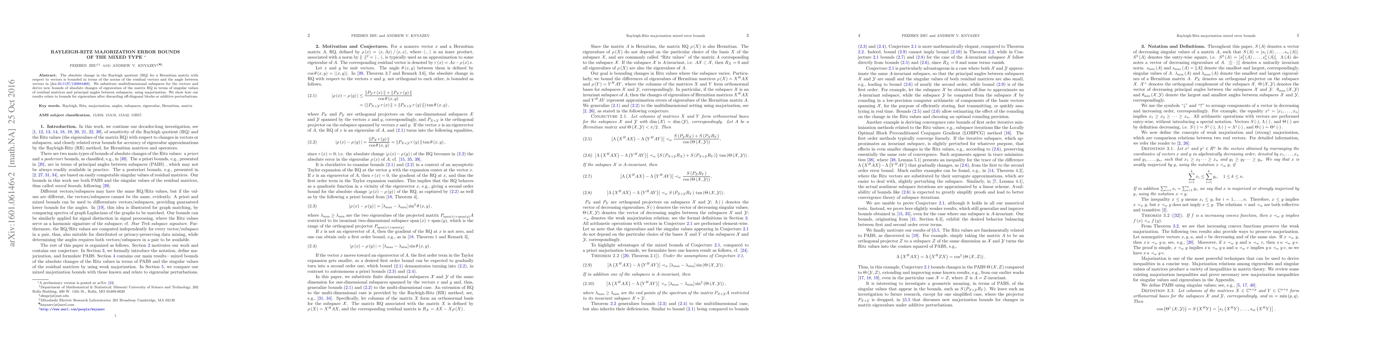 This paper derives new bounds for the absolute change in the Rayleigh quotient of a Hermitian matrix using multidimensional subspaces instead of vectors, employing majorization techniques. The results are linked to existing bounds for eigenvalues affected by off-diagonal block removal or additive perturbations.