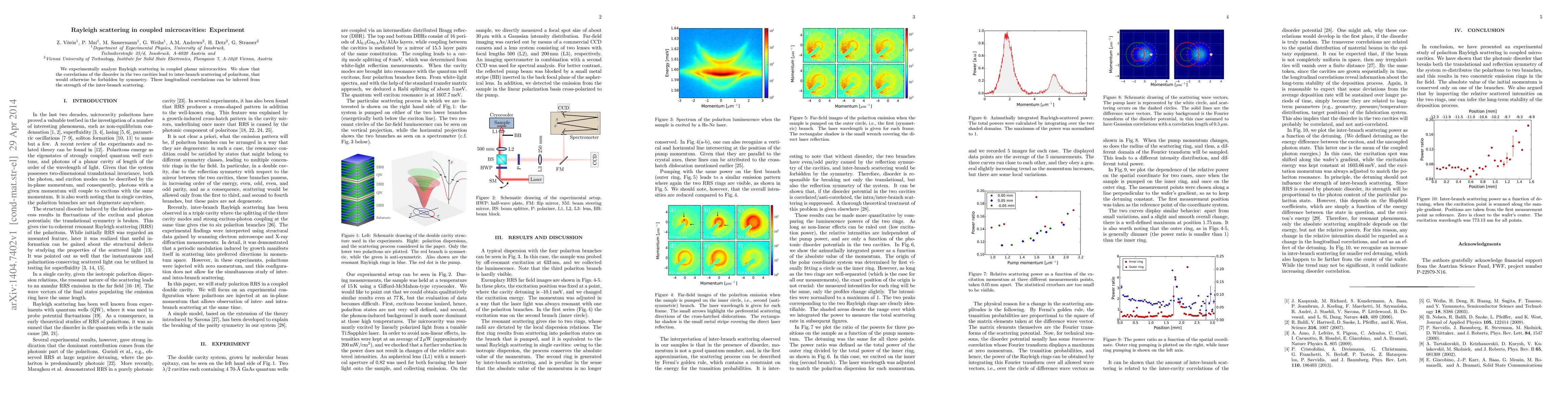 This study experimentally investigates Rayleigh scattering in coupled planar microcavities, revealing that disorder correlations between the cavities enable inter-branch scattering of polaritons, which is typically symmetry-forbidden. The strength of this inter-branch scattering provides insight into the longitudinal correlations of disorder.