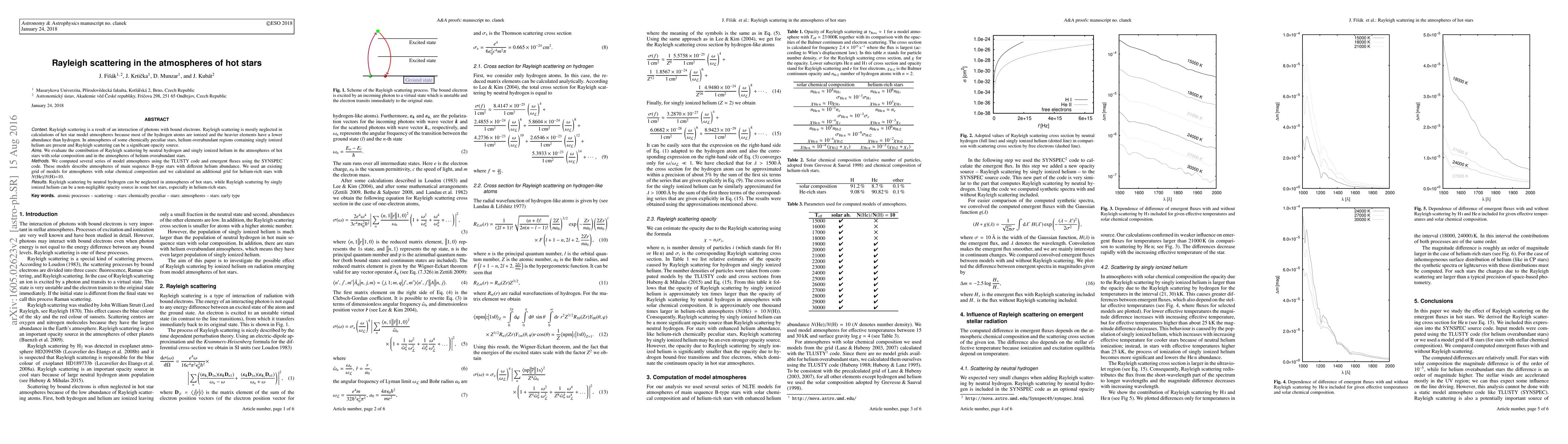 This paper evaluates the impact of Rayleigh scattering by neutral hydrogen and singly ionized helium in hot star atmospheres, finding that while scattering by hydrogen is negligible, it can significantly affect the opacity in helium-rich stars due to the presence of overabundant helium. Models were computed using TLUSTY and SYNSPEC codes for B-type stars with varying helium abundances.
