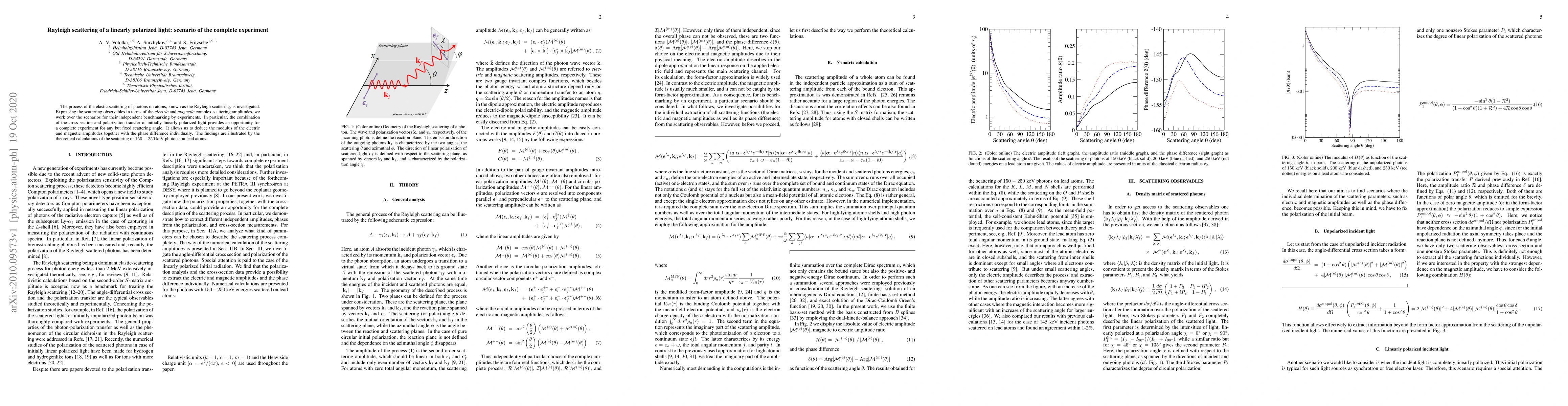 The process of the elastic scattering of photons on atoms, known as the Rayleigh scattering, is investigated. Expressing the scattering observables in terms of the electric and magnetic complex scattering amplitudes, we work over the scenarios for their independent benchmarking by experiments. In particular, the combination of the cross section and polarization transfer of initially linearly polarized light provides an opportunity for a complete experiment for any but fixed scattering angle. It allows us to deduce the modulus of the electric and magnetic amplitudes together with the phase difference individually. The findings are illustrated by the theoretical calculations of the scattering of 150 - 250 keV photons on lead atoms.