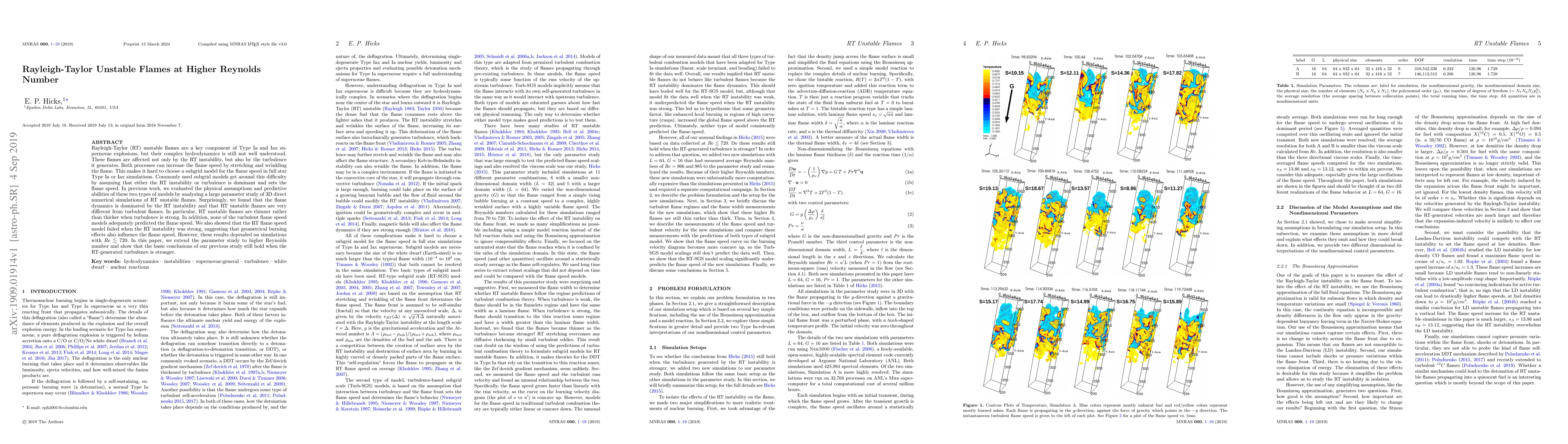 Rayleigh-Taylor (RT) unstable flames are a key component of Type Ia and Iax supernovae explosions, but their complex hydrodynamics is still not well understood. These flames are affected not only by the RT instability, but also by the turbulence it generates. Both processes can increase the flame speed by stretching and wrinkling the flame. This makes it hard to choose a subgrid model for the flame speed in full star Type Ia or Iax simulations. Commonly used subgrid models get around this difficulty by assuming that either the RT instability or turbulence is dominant and sets the flame speed. In previous work, we evaluated the physical assumptions and predictive abilities of these two types of models by analysing a large parameter study of 3D direct numerical simulations of RT unstable flames. Surprisingly, we found that the flame dynamics is dominated by the RT instability and that RT unstable flames are very different from turbulent flames. In particular, RT unstable flames are thinner rather than thicker when turbulence is strong. In addition, none of the turbulent flame speed models adequately predicted the flame speed. We also showed that the RT flame speed model failed when the RT instability was strong, suggesting that geometrical burning effects also influence the flame speed. However, these results depended on simulations with $Re\lesssim720$. In this paper, we extend the parameter study to higher Reynolds number and show that the basic conclusions of our previous study still hold when the RT-generated turbulence is stronger.