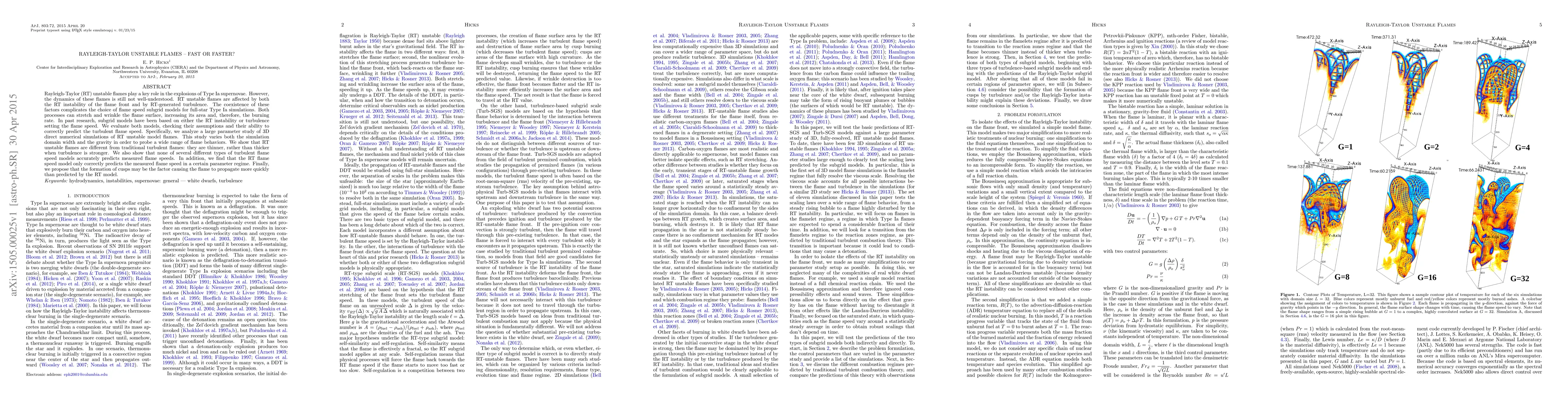 This study investigates the dynamics of Rayleigh-Taylor unstable flames in Type Ia supernovae, finding that these flames are thinner rather than thicker with stronger turbulence. It concludes that existing flame speed subgrid models fail to accurately predict flame behavior, suggesting that the formation of cusps may enhance flame propagation beyond current model predictions.