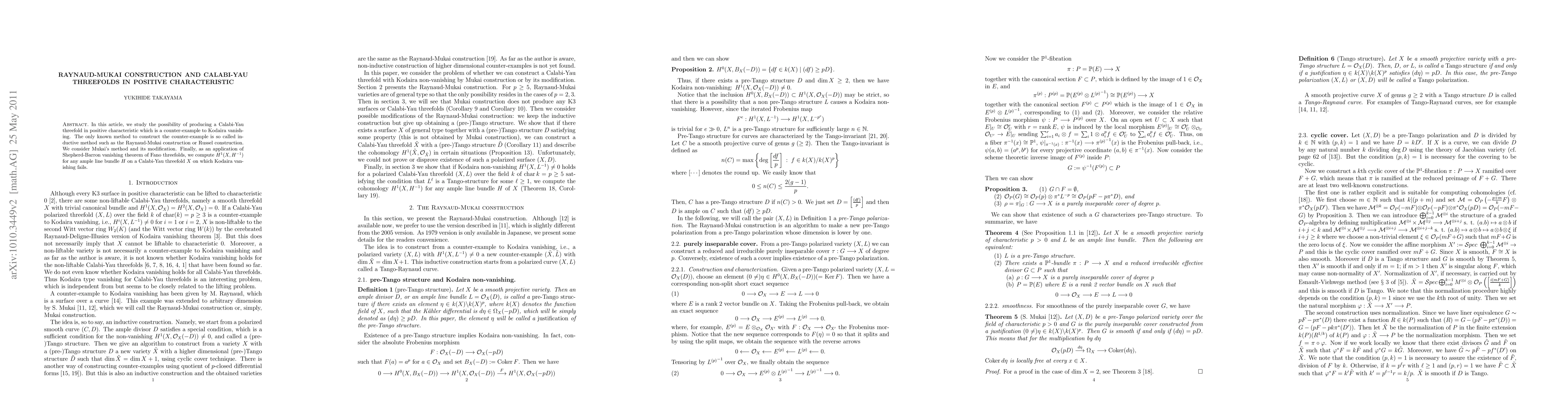 This paper explores the construction of Calabi-Yau threefolds in positive characteristic that challenge Kodaira vanishing, using the Raynaud-Mukai method and its modifications. It applies Shepherd-Barron vanishing theorem to compute $H^1(X, H^{-1})$ for ample line bundles on these threefolds.