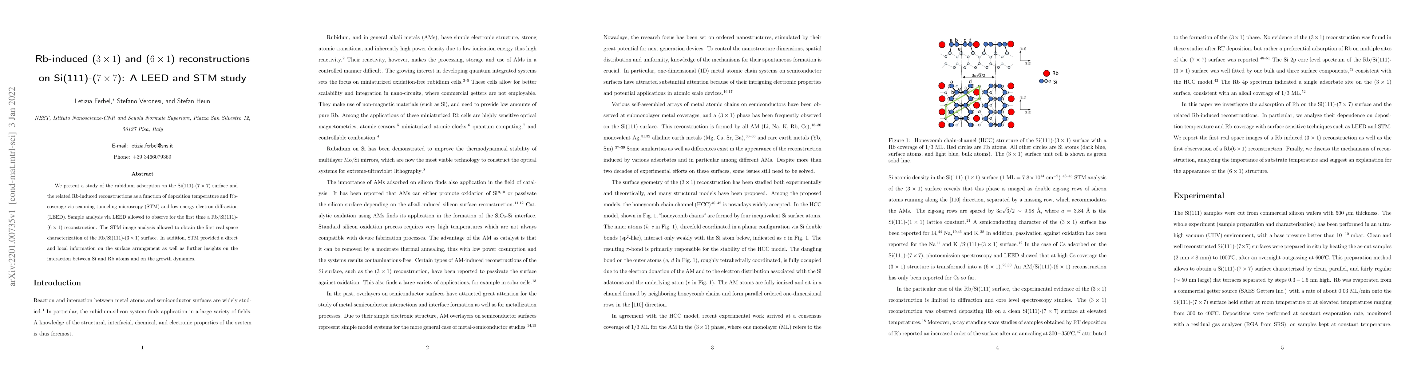 This study investigates rubidium adsorption on the Si(111)-(7x7) surface, revealing Rb-induced (3x1) and (6x1) reconstructions using STM and LEED. LEED identified the Rb/Si(111)-(6x1) reconstruction for the first time, while STM provided real-space characterization of the Rb/Si(111)-(3x1) surface and insights into Si-Rb interactions and growth dynamics.