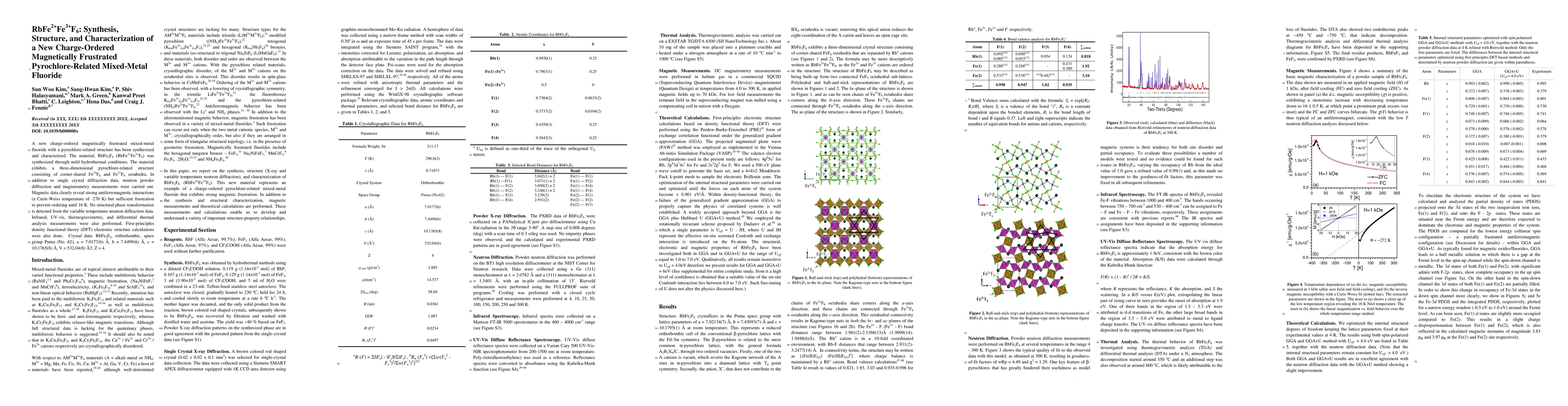 A novel charge-ordered, magnetically frustrated mixed-metal fluoride, RbFe2F6, was synthesized using mild hydrothermal conditions. It has a pyrochlore-related structure with strong antiferromagnetic interactions but no magnetic ordering until 16K. Characterization included single-crystal diffraction, neutron powder diffraction, magnetometry, and electronic structure calculations.