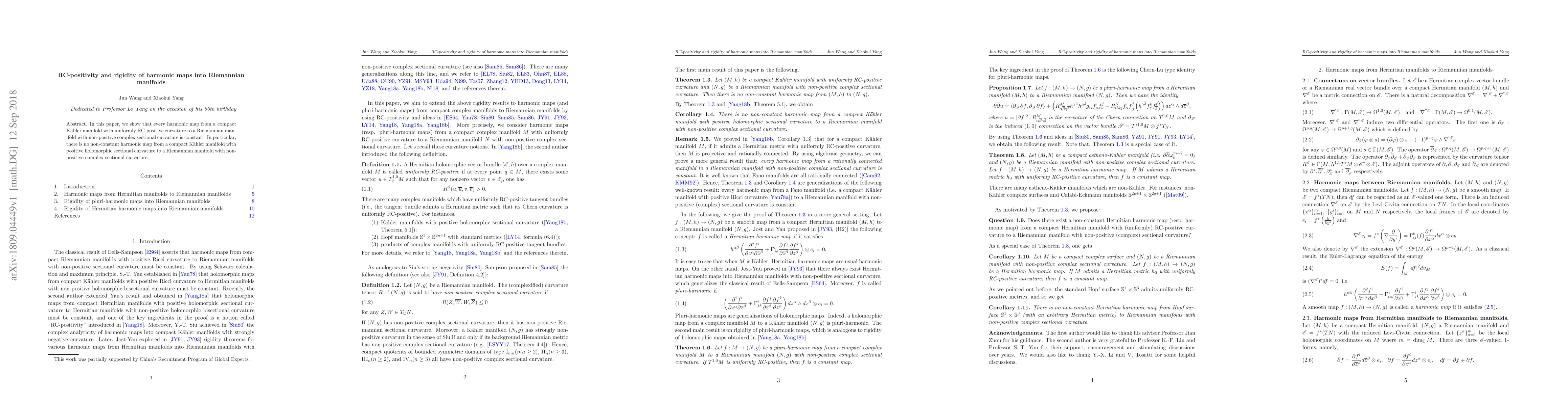 In this paper, we show that every harmonic map from a compact K\"ahler manifold with uniformly RC-positive curvature to a Riemannian manifold with non-positive complex sectional curvature is constant. In particular, there is no non-constant harmonic map from a compact K\"ahler manifold with positive holomorphic sectional curvature to a Riemannian manifold with non-positive complex sectional curvature.