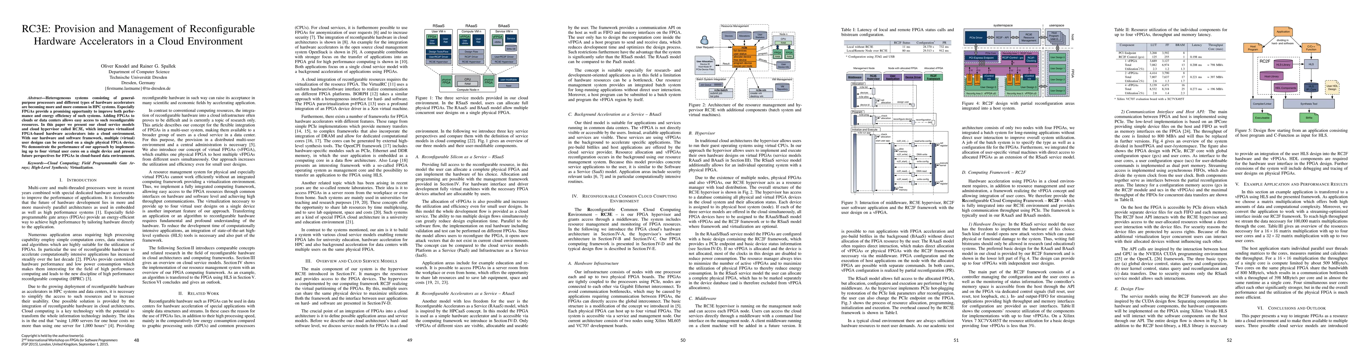 This paper introduces RC3E, a cloud service model and hypervisor for integrating virtualized FPGA-based hardware accelerators into cloud environments, enabling multiple user designs on a single FPGA device and showcasing performance with up to four virtual user cores. Future prospects for FPGAs in cloud-based data environments are also discussed.