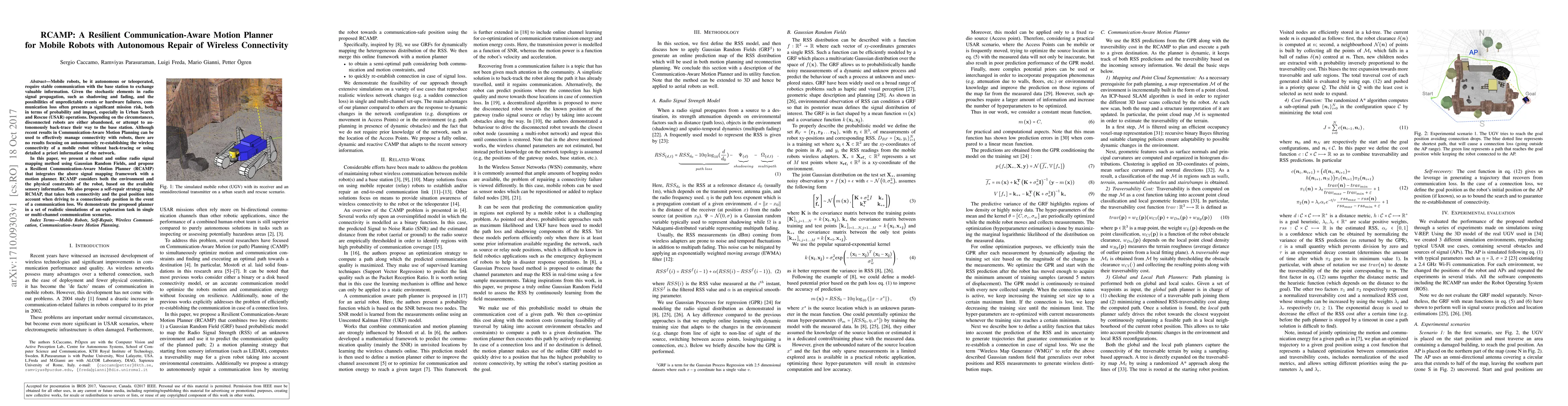 Mobile robots, be it autonomous or teleoperated, require stable communication with the base station to exchange valuable information. Given the stochastic elements in radio signal propagation, such as shadowing and fading, and the possibilities of unpredictable events or hardware failures, communication loss often presents a significant mission risk, both in terms of probability and impact, especially in Urban Search and Rescue (USAR) operations. Depending on the circumstances, disconnected robots are either abandoned or attempt to autonomously back-trace their way to the base station. Although recent results in Communication-Aware Motion Planning can be used to effectively manage connectivity with robots, there are no results focusing on autonomously re-establishing the wireless connectivity of a mobile robot without back-tracking or using detailed a priori information of the network. In this paper, we present a robust and online radio signal mapping method using Gaussian Random Fields and propose a Resilient Communication-Aware Motion Planner (RCAMP) that integrates the above signal mapping framework with a motion planner. RCAMP considers both the environment and the physical constraints of the robot, based on the available sensory information. We also propose a self-repair strategy using RCMAP, that takes both connectivity and the goal position into account when driving to a connection-safe position in the event of a communication loss. We demonstrate the proposed planner in a set of realistic simulations of an exploration task in single or multi-channel communication scenarios.