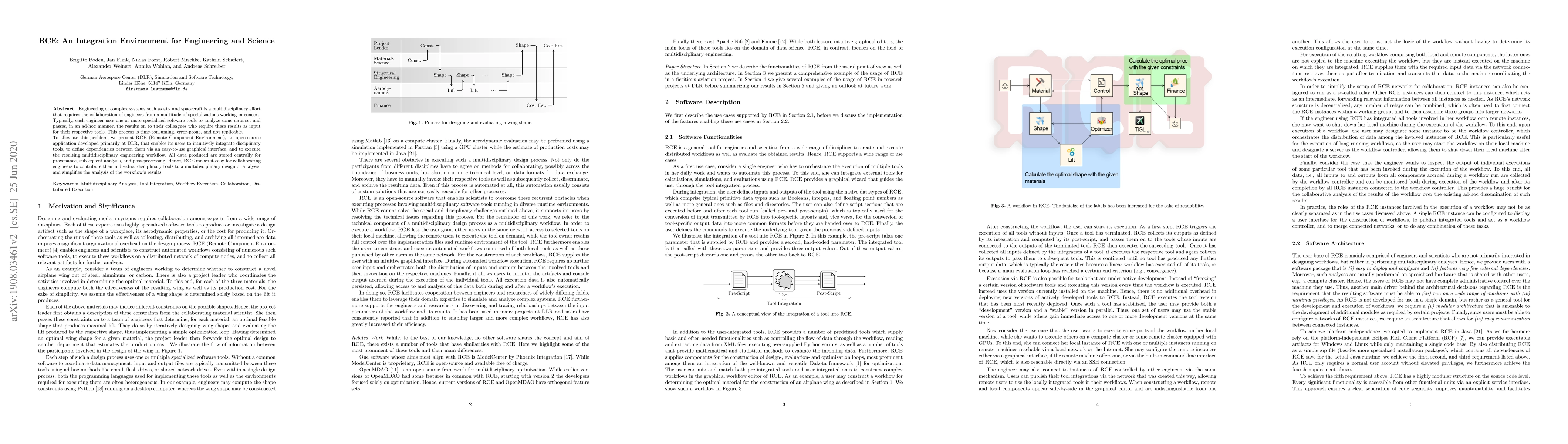 We present RCE (Remote Component Environment), an open-source framework developed primarily at DLR (German Aerospace Center) that enables its users to construct and execute multidisciplinary engineering workflows comprising multiple disciplinary tools. To this end, RCE supplies users with an easy-to-use graphical interface that allows for the intuitive integration of disciplinary tools. Users can execute the individual tools on arbitrary nodes present in the network and all data accrued during the execution of the workflow are collected and stored centrally. Hence, RCE makes it easy for collaborating engineers to contribute their individual disciplinary tools to a multidisciplinary design or analysis, and simplifies the subsequent analysis of the workflow's results.