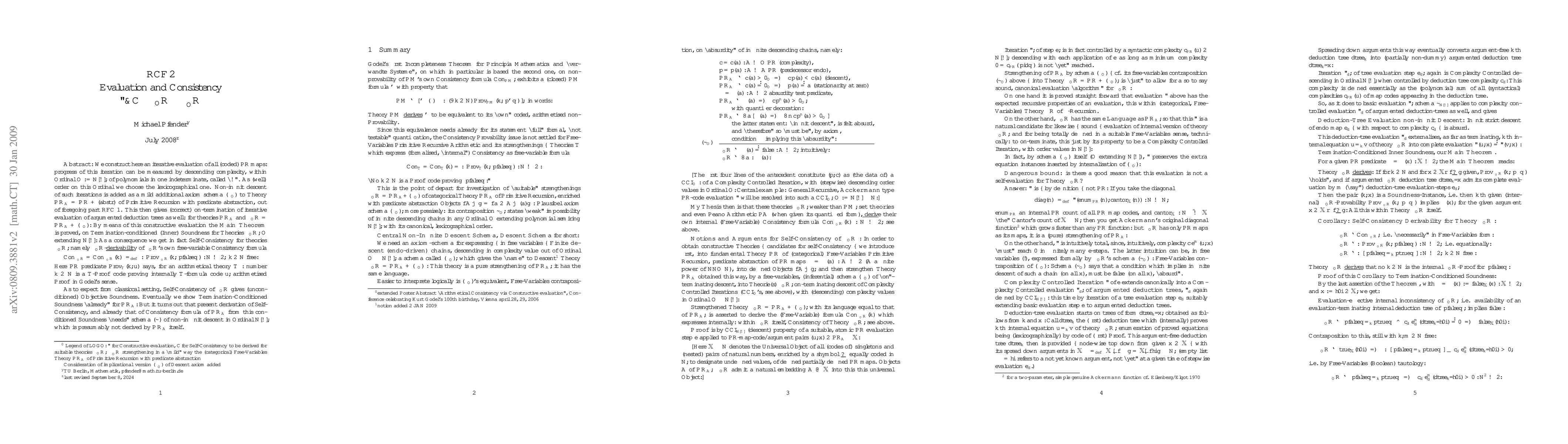 We construct here an iterative evaluation of all PR map codes: progress of this iteration is measured by descending complexity within "Ordinal" O := N[\omega] of polynomials in one indeterminate, ordered lexicographically. Non-infinit descent of such iterations is added as a mild additional axiom schema (\pi_O) to Theory PR_A = PR+(abstr) of Primitive Recursion with predicate abstraction, out of forgoing part RCF 1. This then gives (correct) "on"-termination of iterative evaluation of argumented deduction trees as well, for theories PR_A+(\pi_O). By means of this constructive evaluation the Main Theorem is proved, on Termination-conditioned (Inner) Soundness for such theories, Ordinal O extending N[\omega]. As a consequence we get Self-Consistency for these theories, namely derivation of its own free-variable Consistency formula. As to expect from classical setting, Self-Consistency gives (unconditioned) Objective Soundness. Termination-Conditioned Soundness holds "already" for PR_A, but it turns out that at least present derivation of Consistency from this conditioned Soundness depends on schema (\pi_O) of non-infinit descent in Ordinal O := \N[\omega].