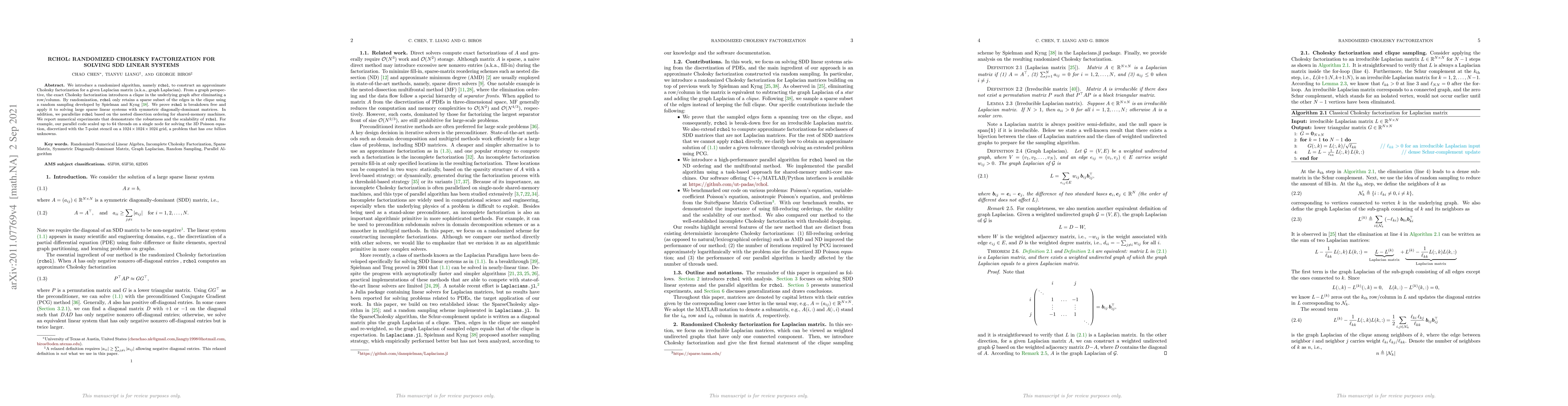 Researchers introduce RCHOL, a randomized algorithm that efficiently solves large sparse linear systems using approximate Cholesky factorization, achieving scalability up to 64 threads on a single node.