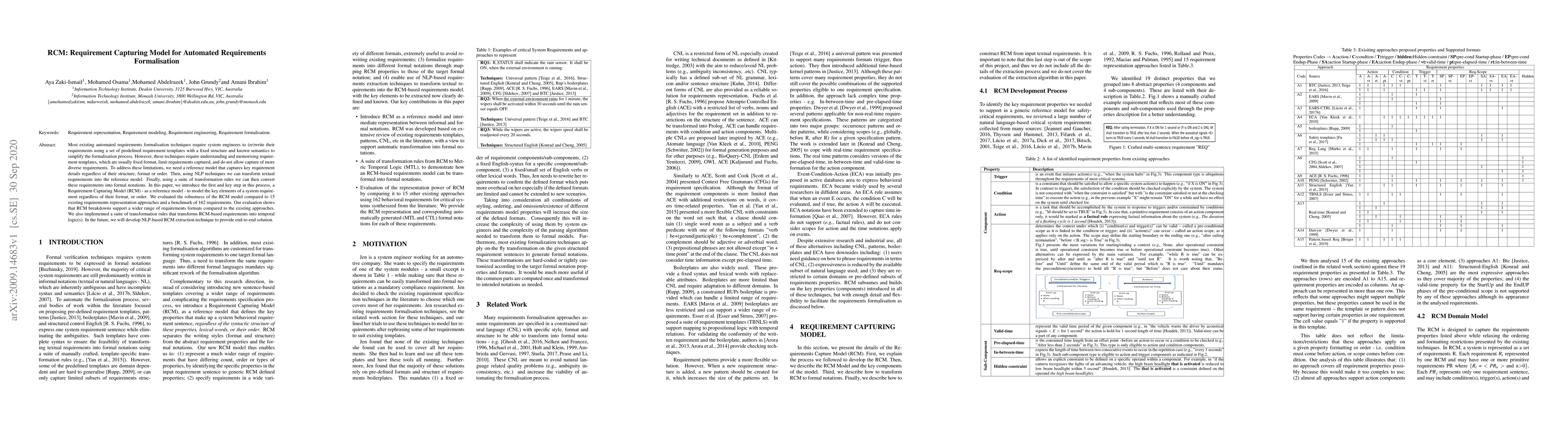 A new reference model called Requirement Capturing Model (RCM) is introduced to capture system requirements in a flexible format, allowing for wider range of requirement formats compared to existing approaches.