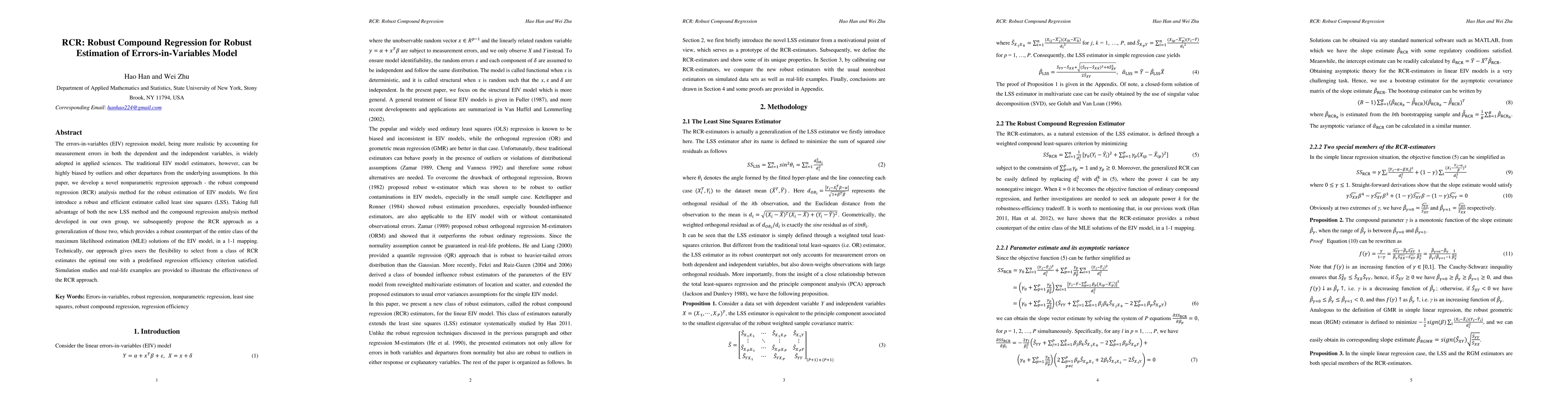 This paper introduces a robust compound regression (RCR) method for estimating errors-in-variables (EIV) models, addressing the bias from outliers. The proposed RCR approach combines a new least sine squares (LSS) estimator with compound regression analysis, offering a robust alternative to traditional maximum likelihood estimation (MLE) methods.