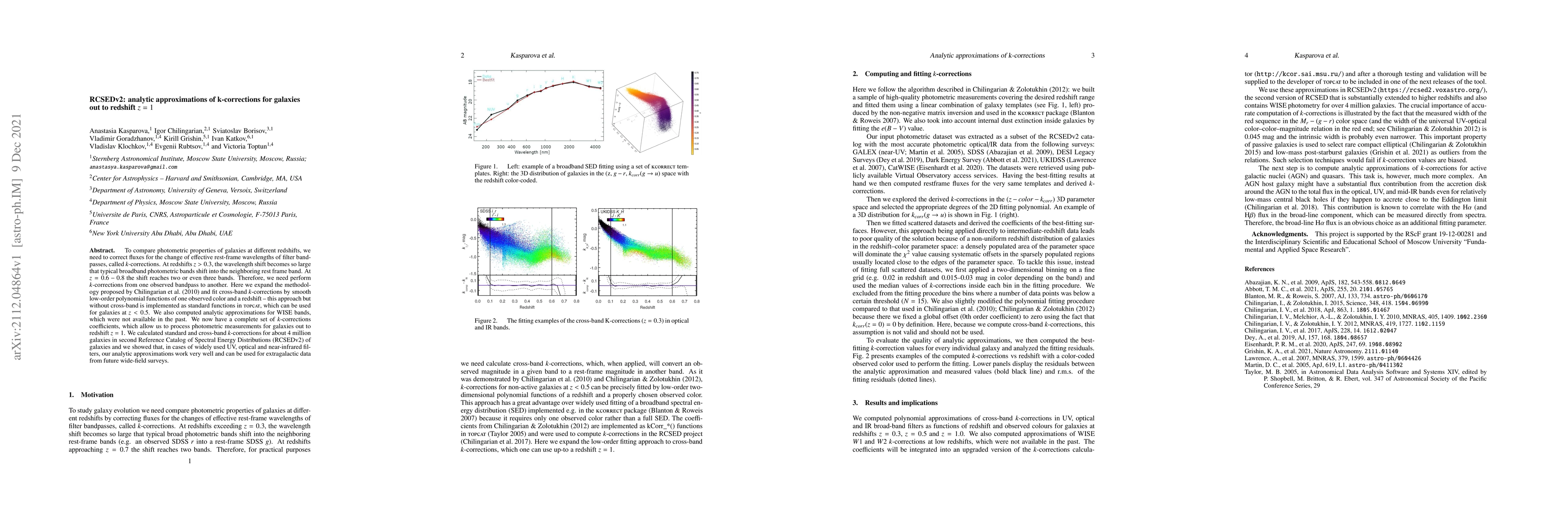 RCSEDv2 provides analytic approximations for $k$-corrections to compare galaxy photometric properties across redshifts up to $z=1$. The methodology fits cross-band $k$-corrections using low-order polynomial functions of observed colors and redshift, extending previous methods to include WISE bands and processing data for about 4 million galaxies.