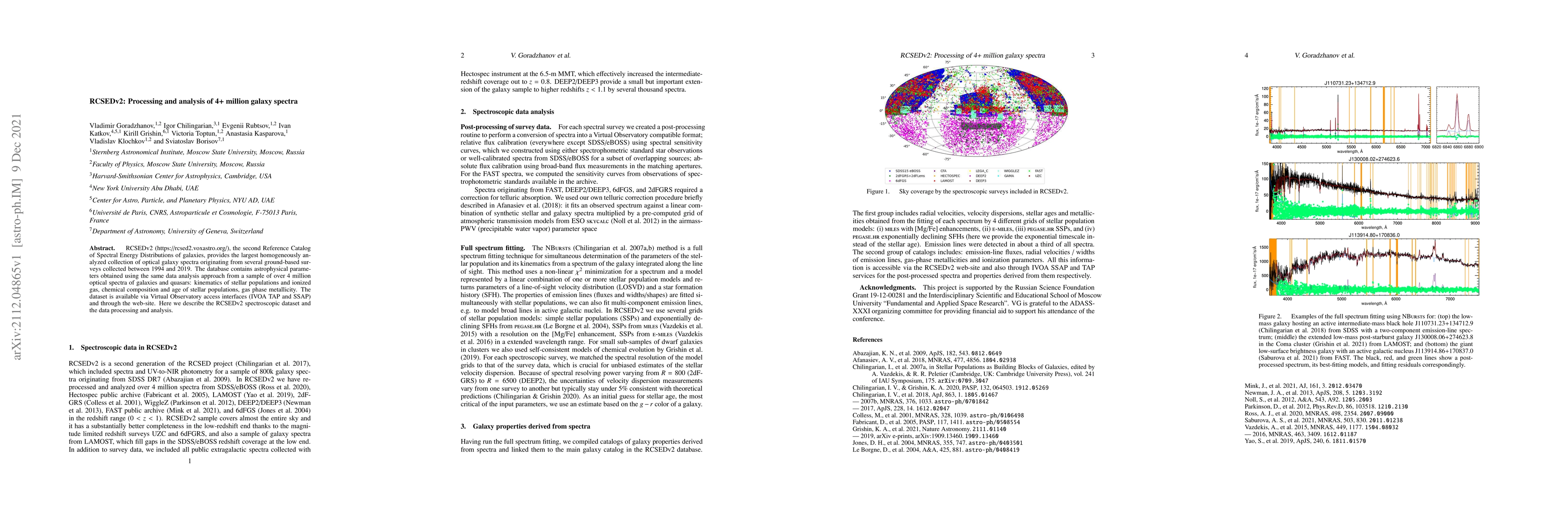 RCSEDv2 is a comprehensive catalog of over 4 million galaxy spectra analyzed uniformly, offering detailed astrophysical parameters including stellar population kinematics and gas phase metallicity. The dataset is accessible through Virtual Observatory interfaces and its web-site.