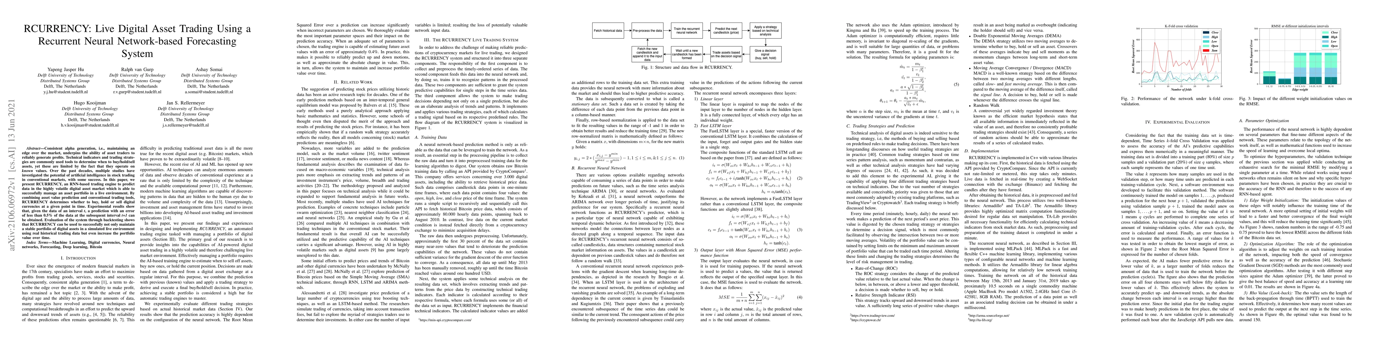 RCURRENCY employs an RNN-based forecasting system to predict digital asset prices, enabling effective live trading strategies. Experimental results indicate that RCURRENCY can maintain and grow a digital asset portfolio by achieving less than 0.5% prediction error in subsequent intervals.
