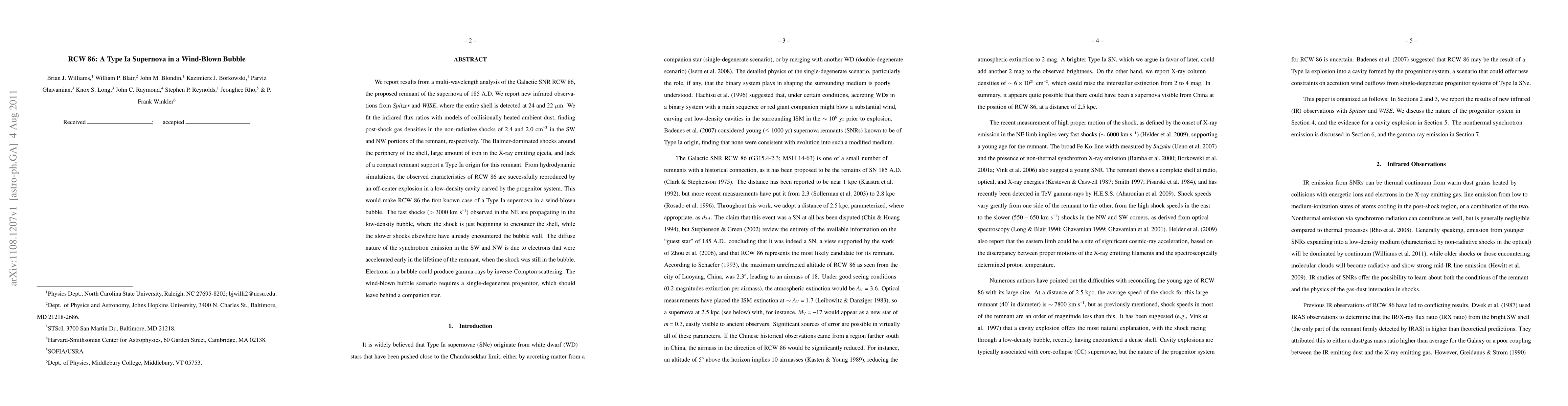 This paper identifies RCW 86 as the remnant of a Type Ia supernova from 185 A.D., supported by infrared observations and hydrodynamic simulations. The analysis suggests an off-center explosion in a wind-blown bubble, making RCW 86 the first known Type Ia supernova in such an environment.