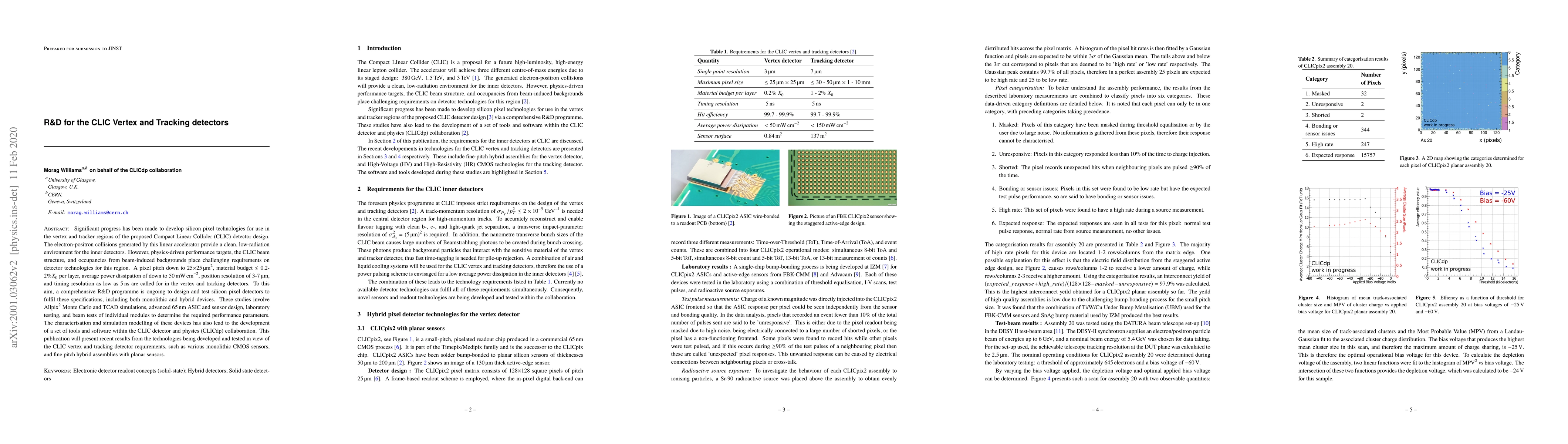 The development of novel silicon pixel detector technologies, including monolithic CMOS sensors and fine-pitch hybrid assemblies with planar sensors, tailored to meet the stringent requirements of the CLIC vertex and tracking detectors.