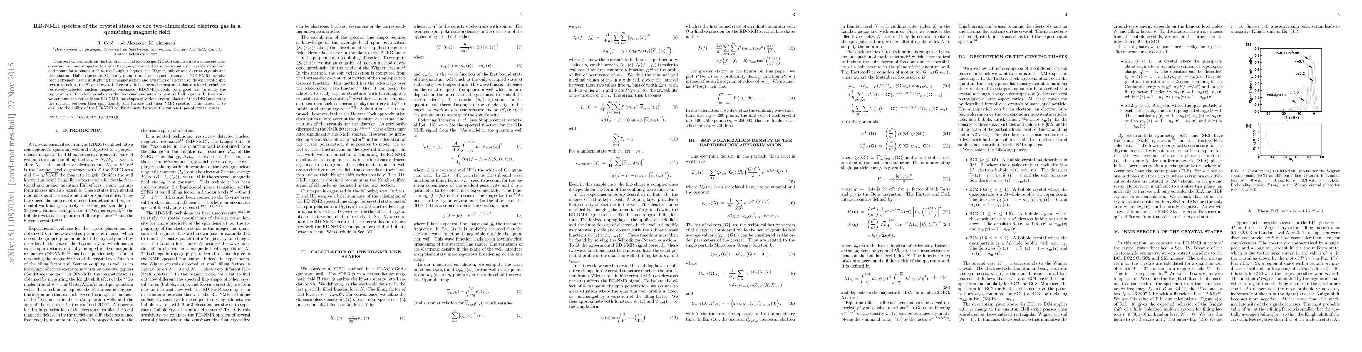 This paper theoretically computes RD-NMR line shapes for various crystal phases of a two-dimensional electron gas in a quantizing magnetic field, evaluating RD-NMR's potential to distinguish between different crystal states based on their spin density and texture.