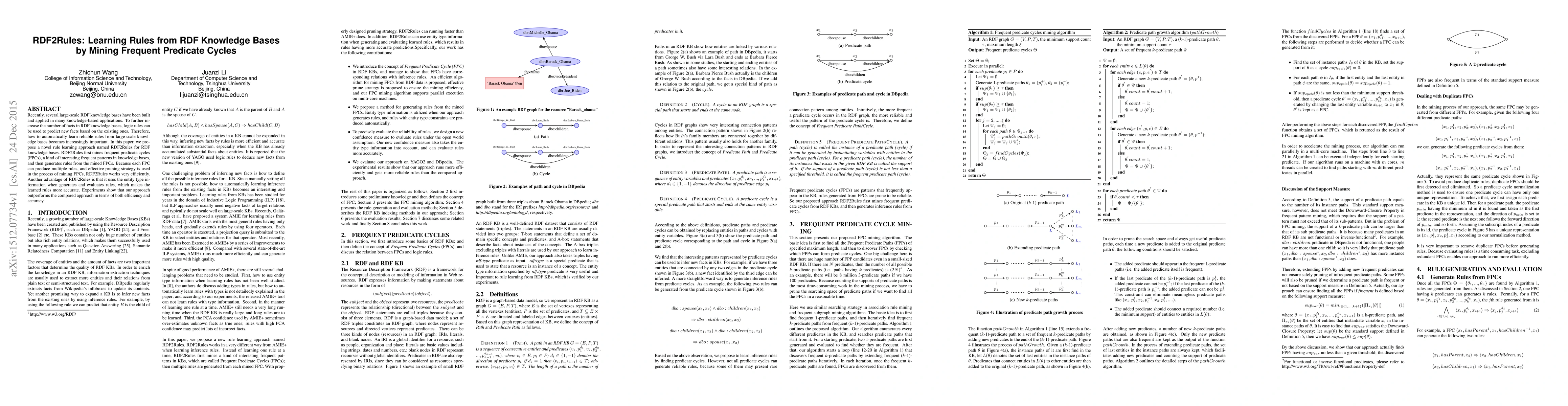 RDF2Rules proposes an efficient method to learn reliable logic rules from large-scale RDF knowledge bases by mining frequent predicate cycles and using entity type information to enhance rule accuracy, outperforming existing approaches in both efficiency and accuracy.