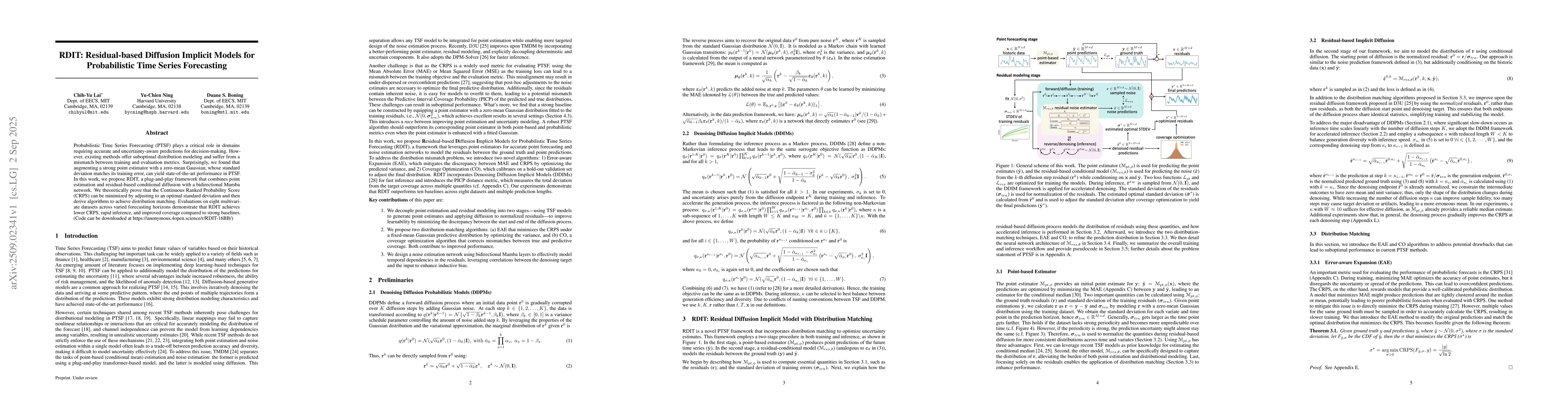 Probabilistic Time Series Forecasting (PTSF) plays a critical role in domains requiring accurate and uncertainty-aware predictions for decision-making. However, existing methods offer suboptimal distribution modeling and suffer from a mismatch between training and evaluation metrics. Surprisingly, we found that augmenting a strong point estimator with a zero-mean Gaussian, whose standard deviation matches its training error, can yield state-of-the-art performance in PTSF. In this work, we propose RDIT, a plug-and-play framework that combines point estimation and residual-based conditional diffusion with a bidirectional Mamba network. We theoretically prove that the Continuous Ranked Probability Score (CRPS) can be minimized by adjusting to an optimal standard deviation and then derive algorithms to achieve distribution matching. Evaluations on eight multivariate datasets across varied forecasting horizons demonstrate that RDIT achieves lower CRPS, rapid inference, and improved coverage compared to strong baselines.
