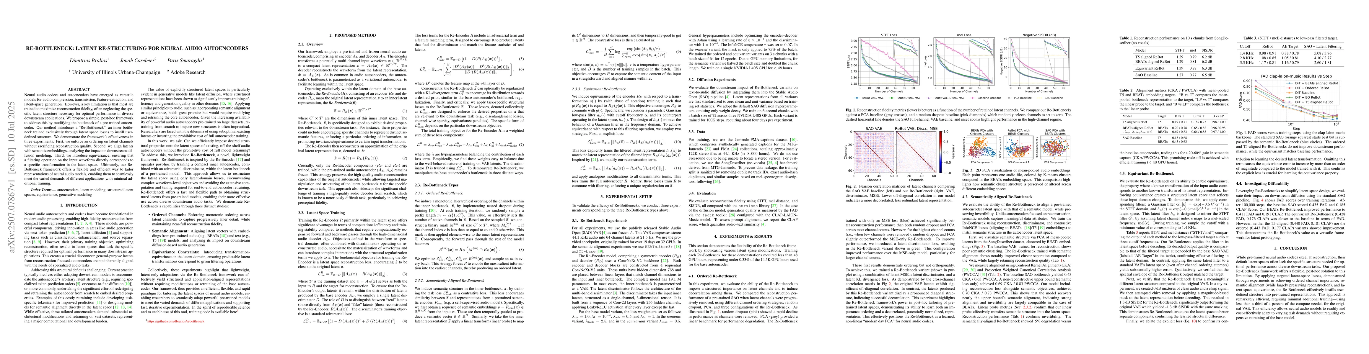 Neural audio codecs and autoencoders have emerged as versatile models for audio compression, transmission, feature-extraction, and latent-space generation. However, a key limitation is that most are trained to maximize reconstruction fidelity, often neglecting the specific latent structure necessary for optimal performance in diverse downstream applications. We propose a simple, post-hoc framework to address this by modifying the bottleneck of a pre-trained autoencoder. Our method introduces a "Re-Bottleneck", an inner bottleneck trained exclusively through latent space losses to instill user-defined structure. We demonstrate the framework's effectiveness in three experiments. First, we enforce an ordering on latent channels without sacrificing reconstruction quality. Second, we align latents with semantic embeddings, analyzing the impact on downstream diffusion modeling. Third, we introduce equivariance, ensuring that a filtering operation on the input waveform directly corresponds to a specific transformation in the latent space. Ultimately, our Re-Bottleneck framework offers a flexible and efficient way to tailor representations of neural audio models, enabling them to seamlessly meet the varied demands of different applications with minimal additional training.