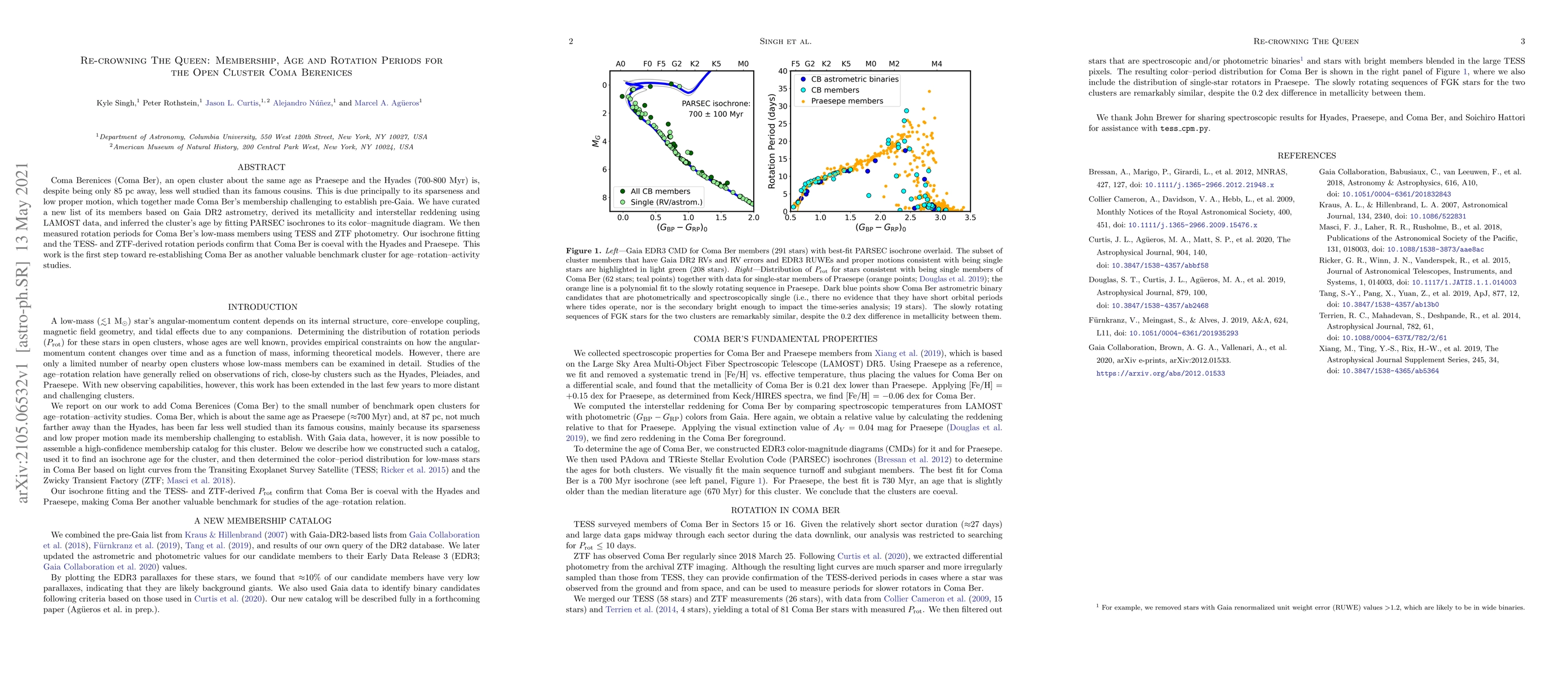 Coma Berenices (Coma Ber), an open cluster about the same age as Praesepe and the Hyades (700-800 Myr) is, despite being only 85 pc away, less well studied than its famous cousins. This is due principally to its sparseness and low proper motion, which together made Coma Ber's membership challenging to establish pre-Gaia. We have curated a new list of its members based on Gaia DR2 astrometry, derived its metallicity and interstellar reddening using LAMOST data, and inferred the cluster's age by fitting PARSEC isochrones to its color$-$magnitude diagram. We then measured rotation periods for Coma Ber's low-mass members using TESS and ZTF photometry. Our isochrone fitting and the TESS- and ZTF-derived rotation periods confirm that Coma Ber is coeval with the Hyades and Praesepe. This work is the first step toward re-establishing Coma Ber as another valuable benchmark cluster for age$-$rotation$-$activity studies.