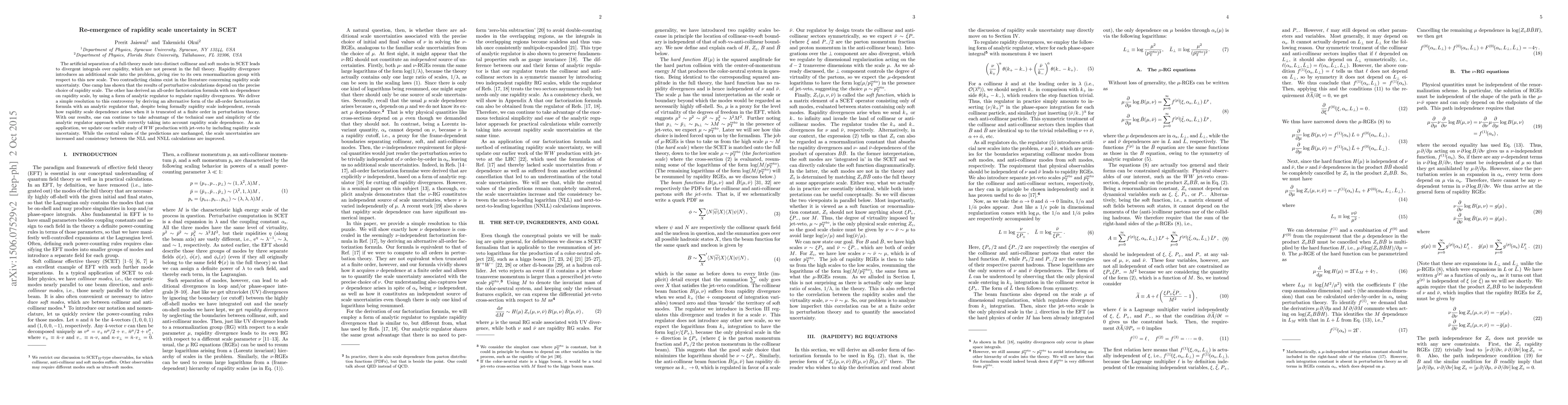 The paper resolves the controversy over rapidity scale uncertainty in SCET by deriving an alternative all-order factorization formula that accounts for scale dependence when truncated at finite perturbation theory orders, while maintaining the simplicity of the analytic regulator approach. This leads to improved consistency in predictions for WW production with jet-veto, albeit with increased scale uncertainties.