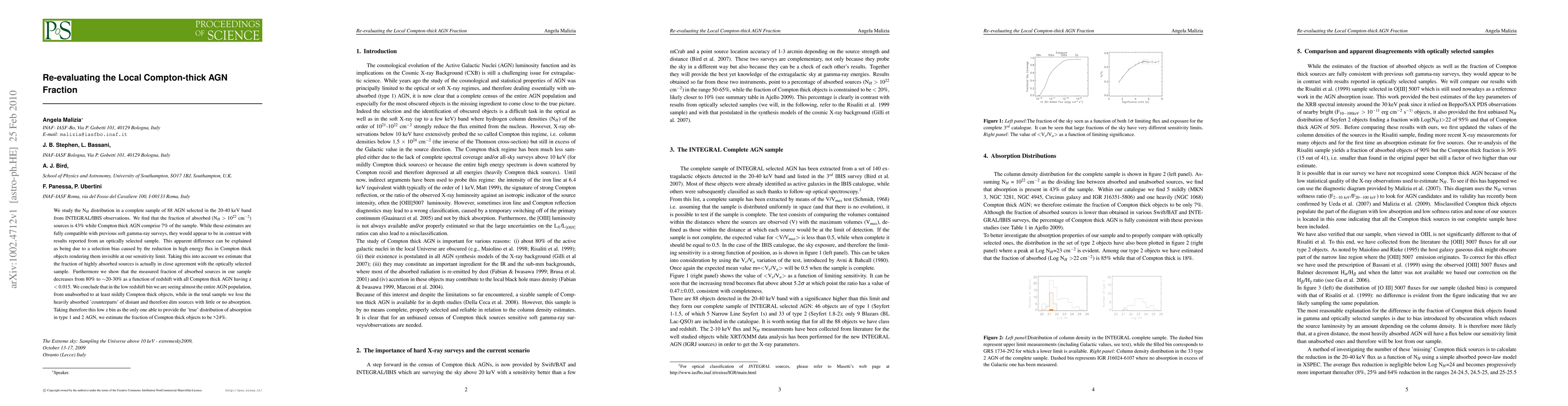 The paper presents an updated and comprehensive analysis of the local Compton-thick AGN fraction using hard X-ray data, addressing selection biases and providing a more accurate estimation of absorbed and Compton-thick AGN.