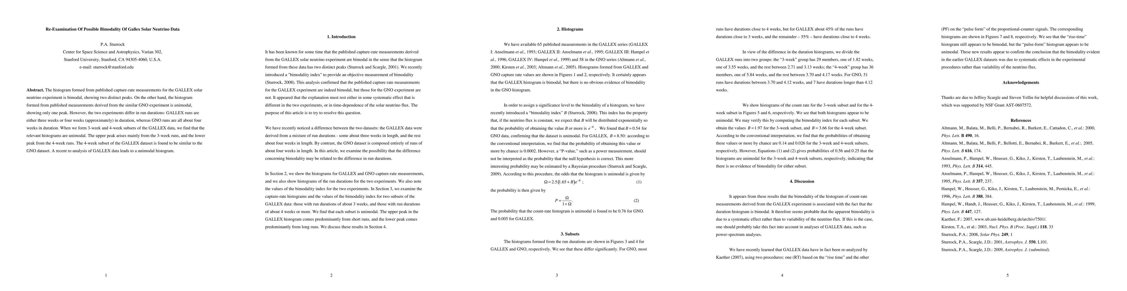 The GALLEX solar neutrino experiment's data appears bimodal, but re-examination reveals it is unimodal when subsetted into 3-week and 4-week runs, similar to the GNO experiment.